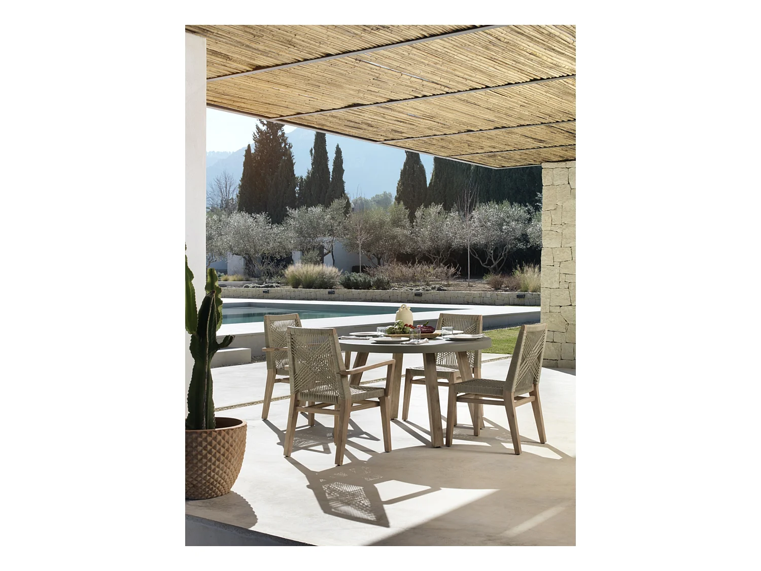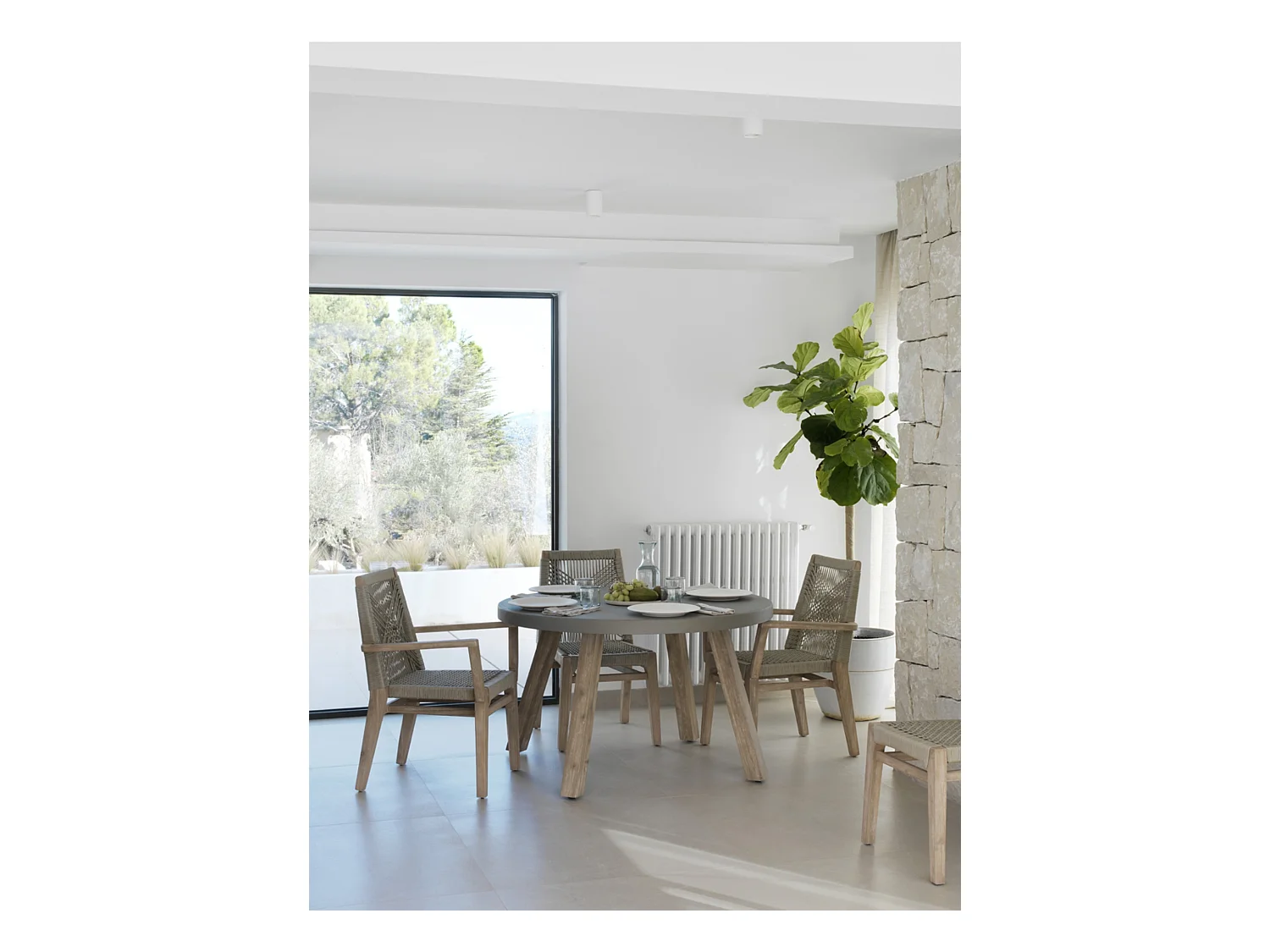 4er Set Sesseln aus Akazienholz und taupefarb Seilgeflecht