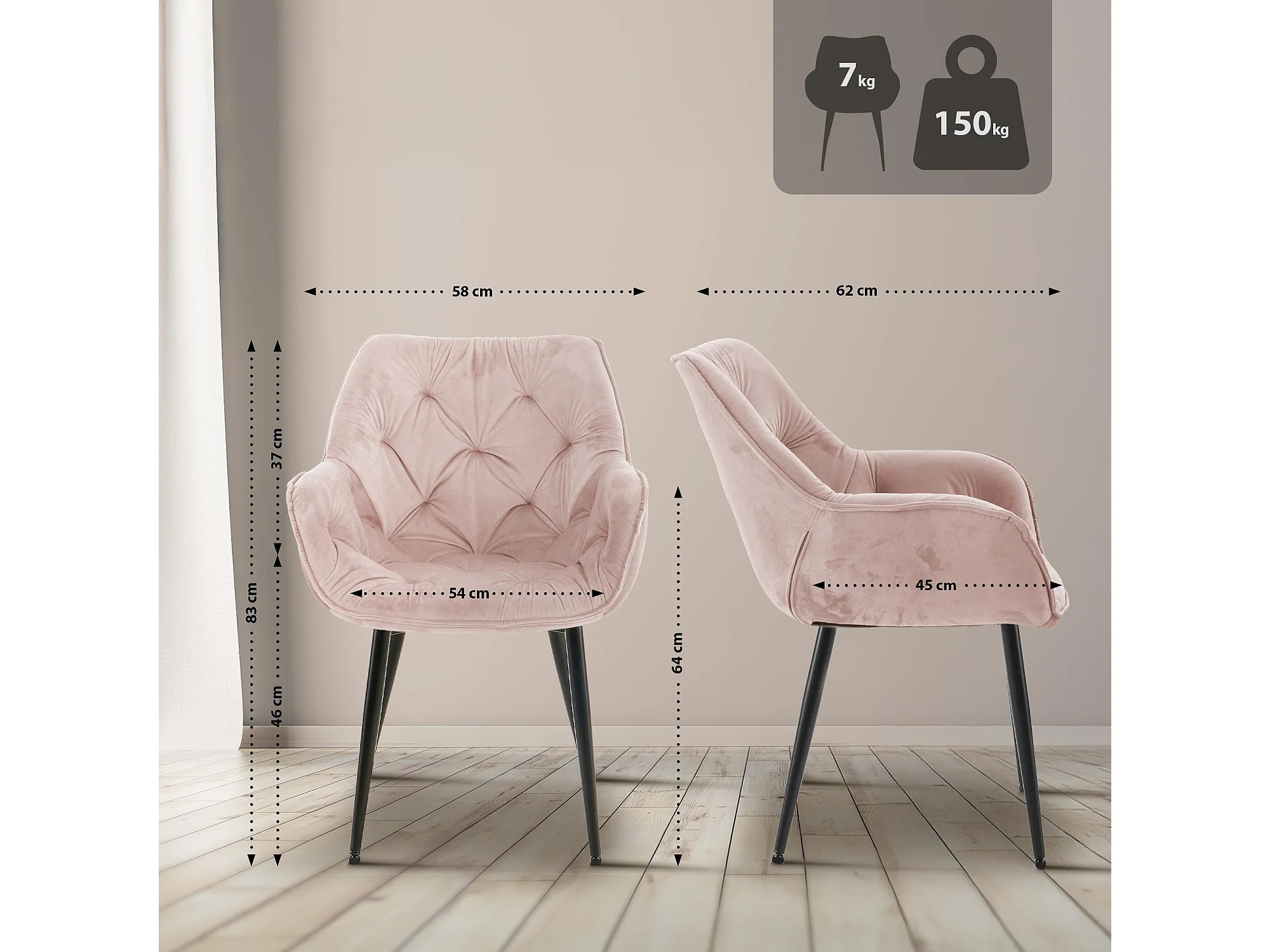 4er Set Stuhl mit Armlehnen - Samt - pink - Tanna