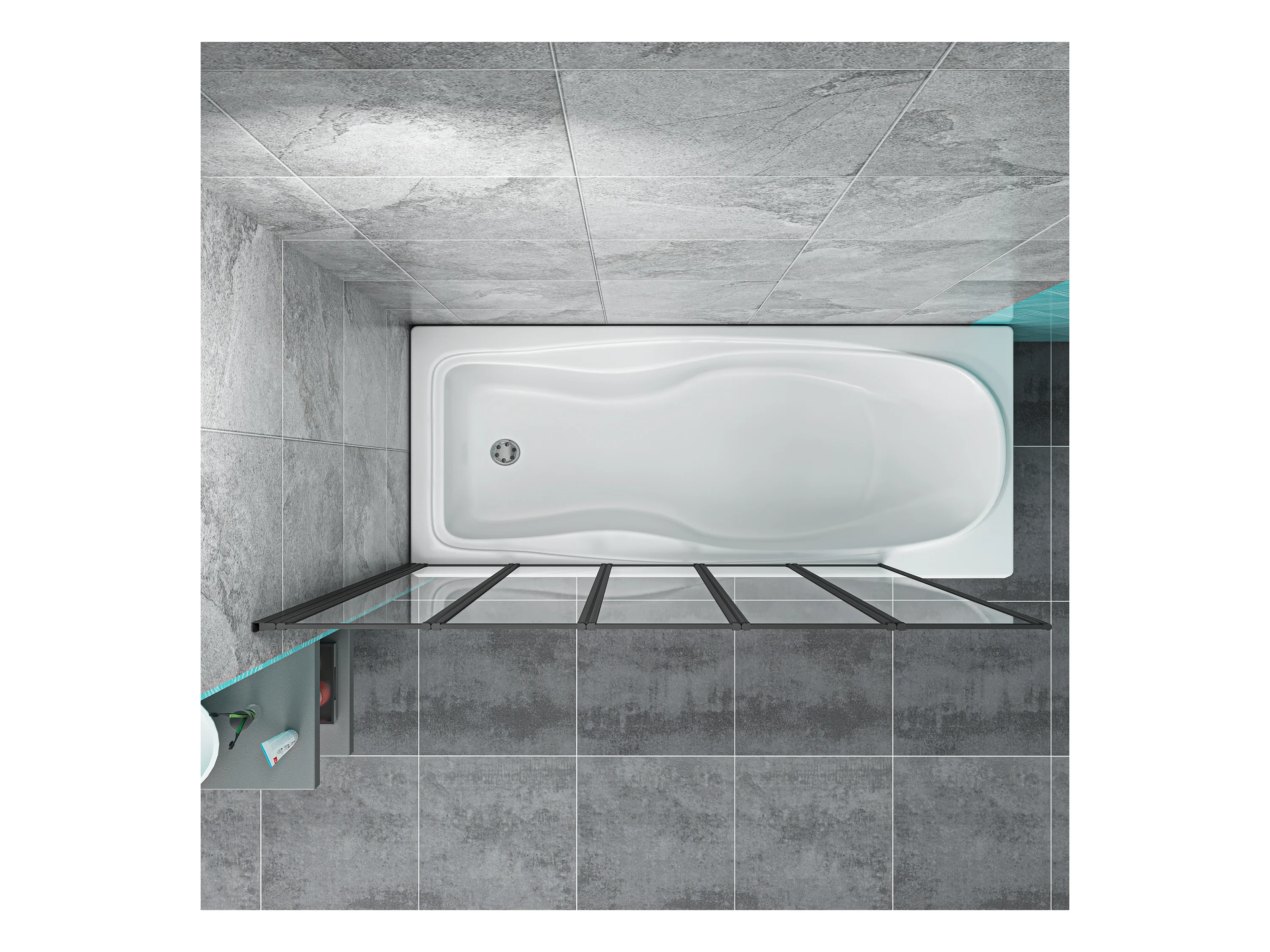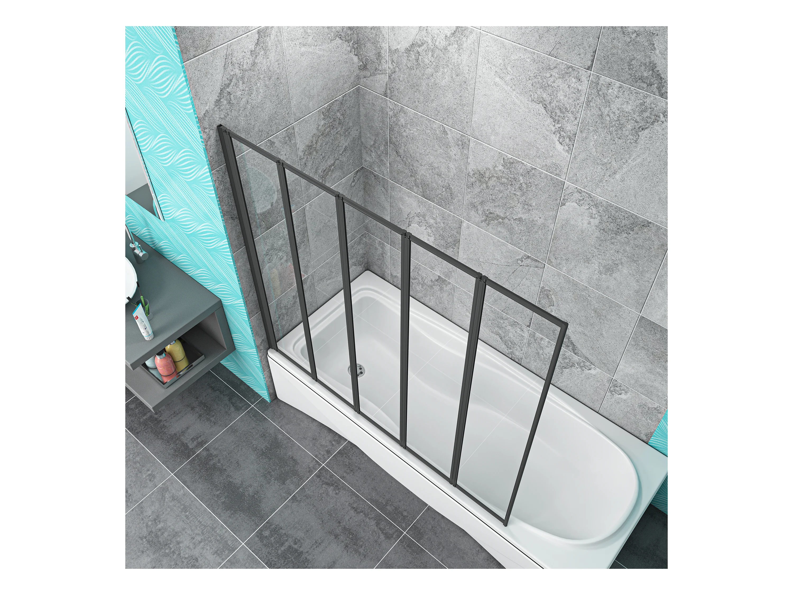 4mm 5-teilig schwarz Duschwand Trennwand Faltwand