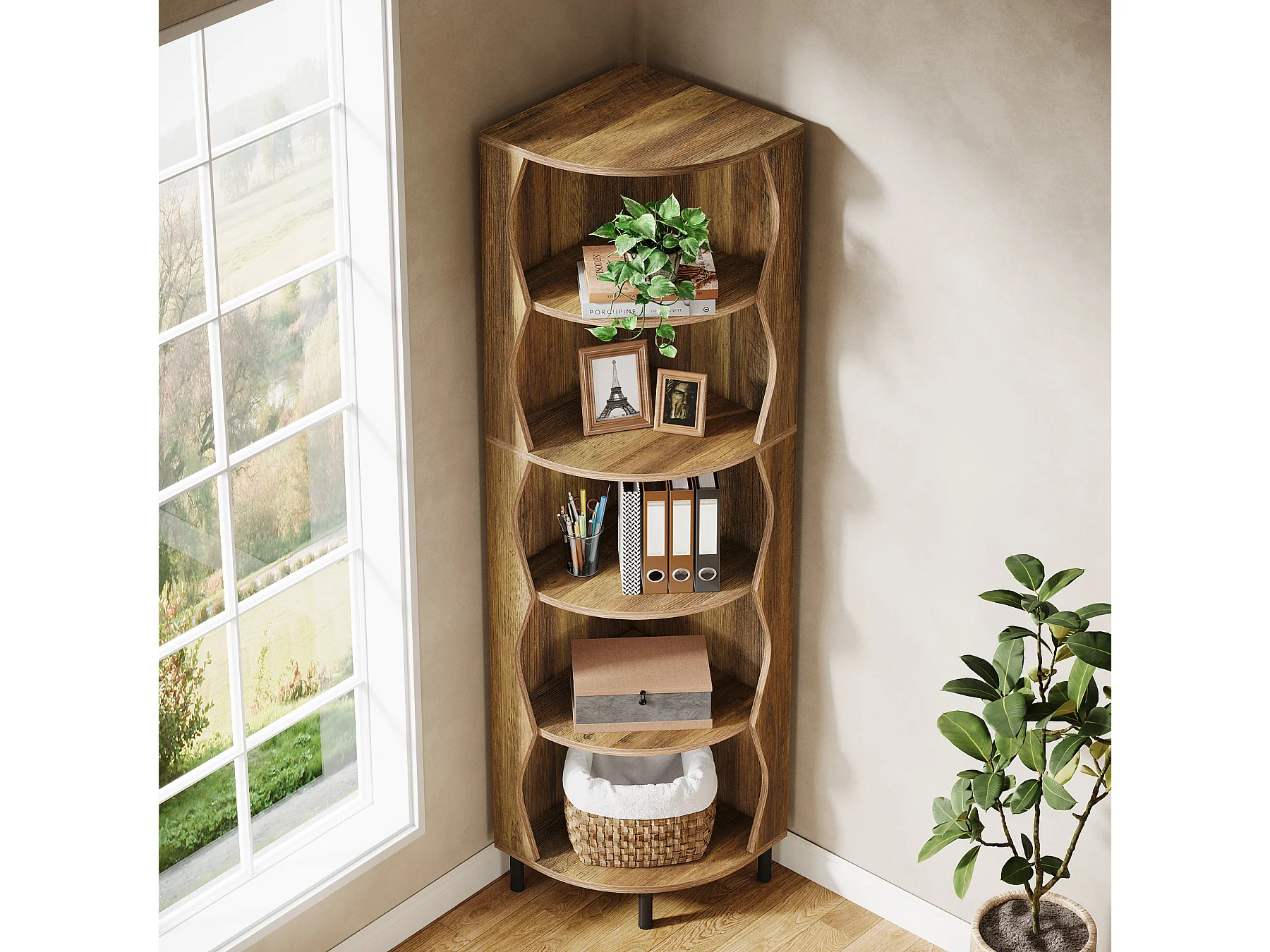 5-Etagen-Eckregal, 182 cm hohes Eckregal, stilvolles Holzregal, Displayregal, Aufbewahrungsgestell, Pflanzenständer