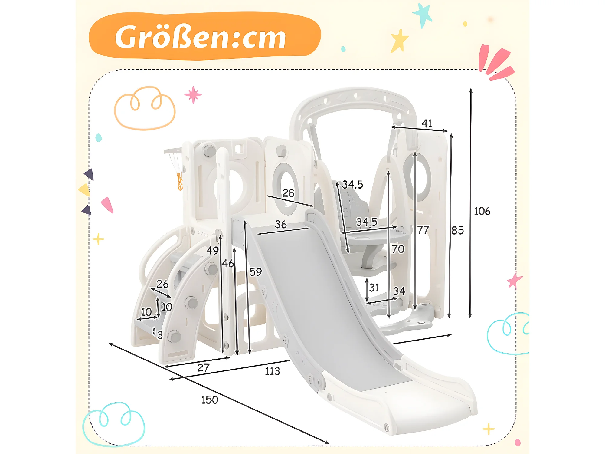 5-in-1 Rutsche für Kinder, inklusive Rutsche und Schaukel