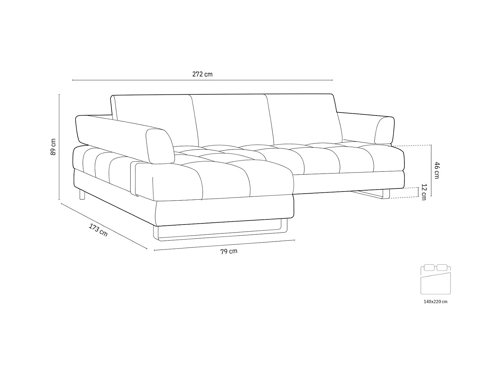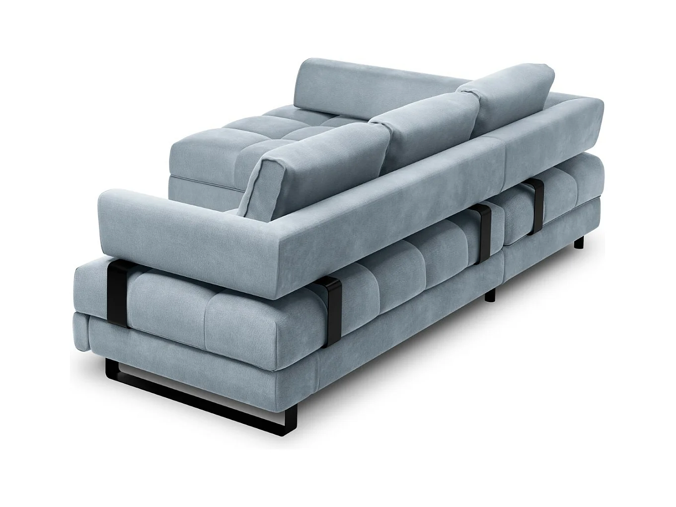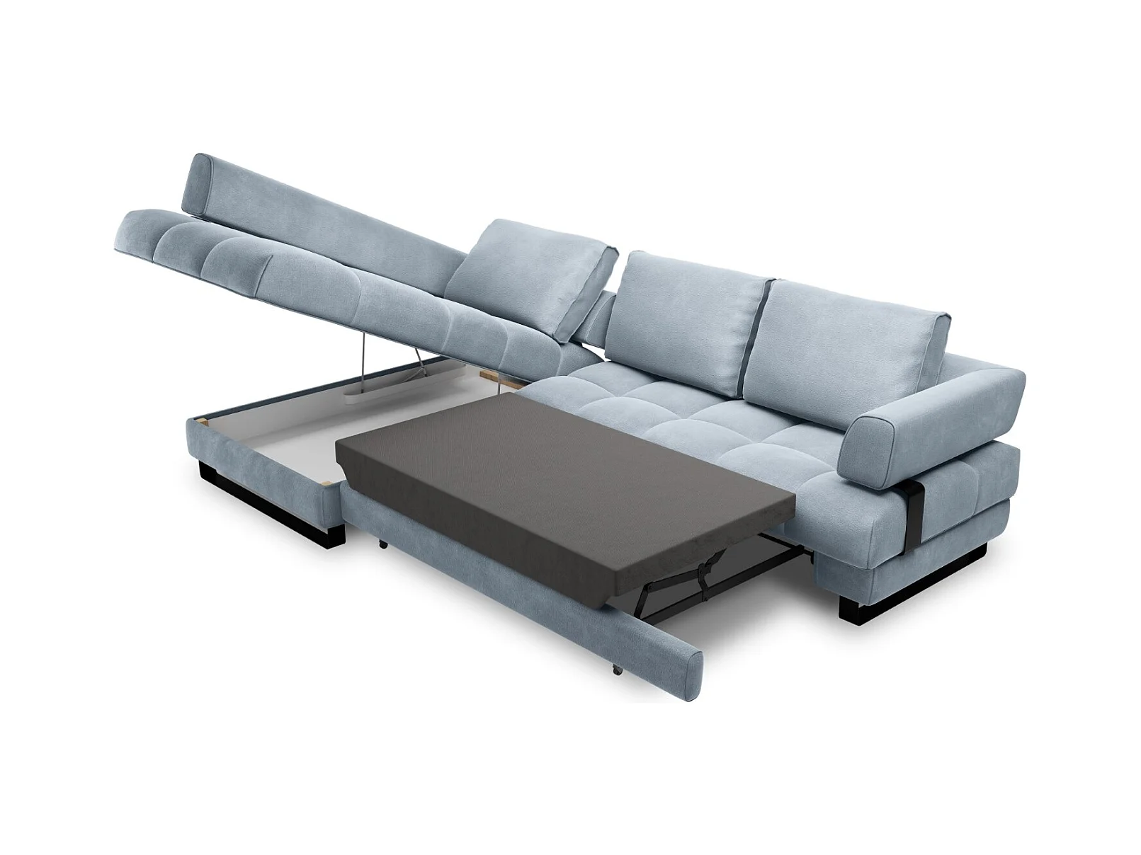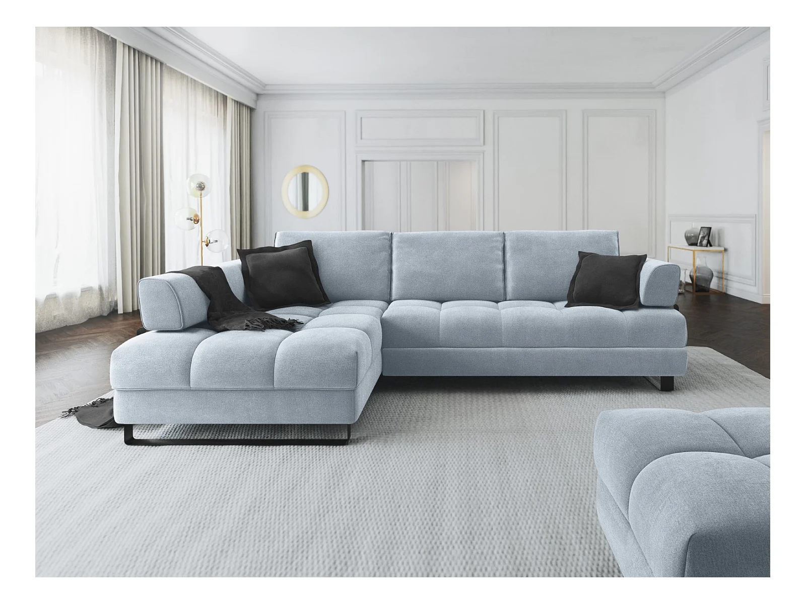 Cosmopolitan Design - 5-Sitzer ausklappbares Ecksofa links mit Container "Clinton" aus Samt hellblau - 272x173x89cm