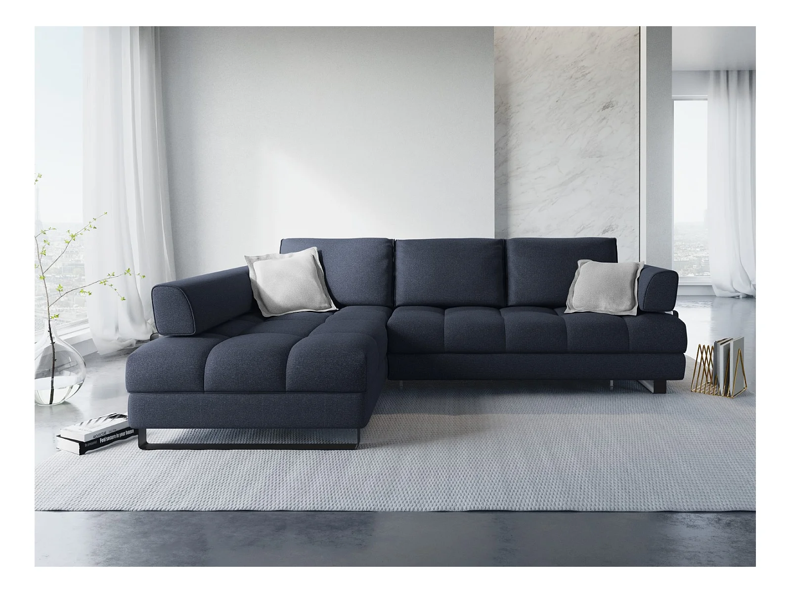 Cosmopolitan Design - 5-Sitzer ausklappbares Ecksofa links mit Container "Clinton" aus strukturiertem Stoff dunkelblau - 272x173x89cm