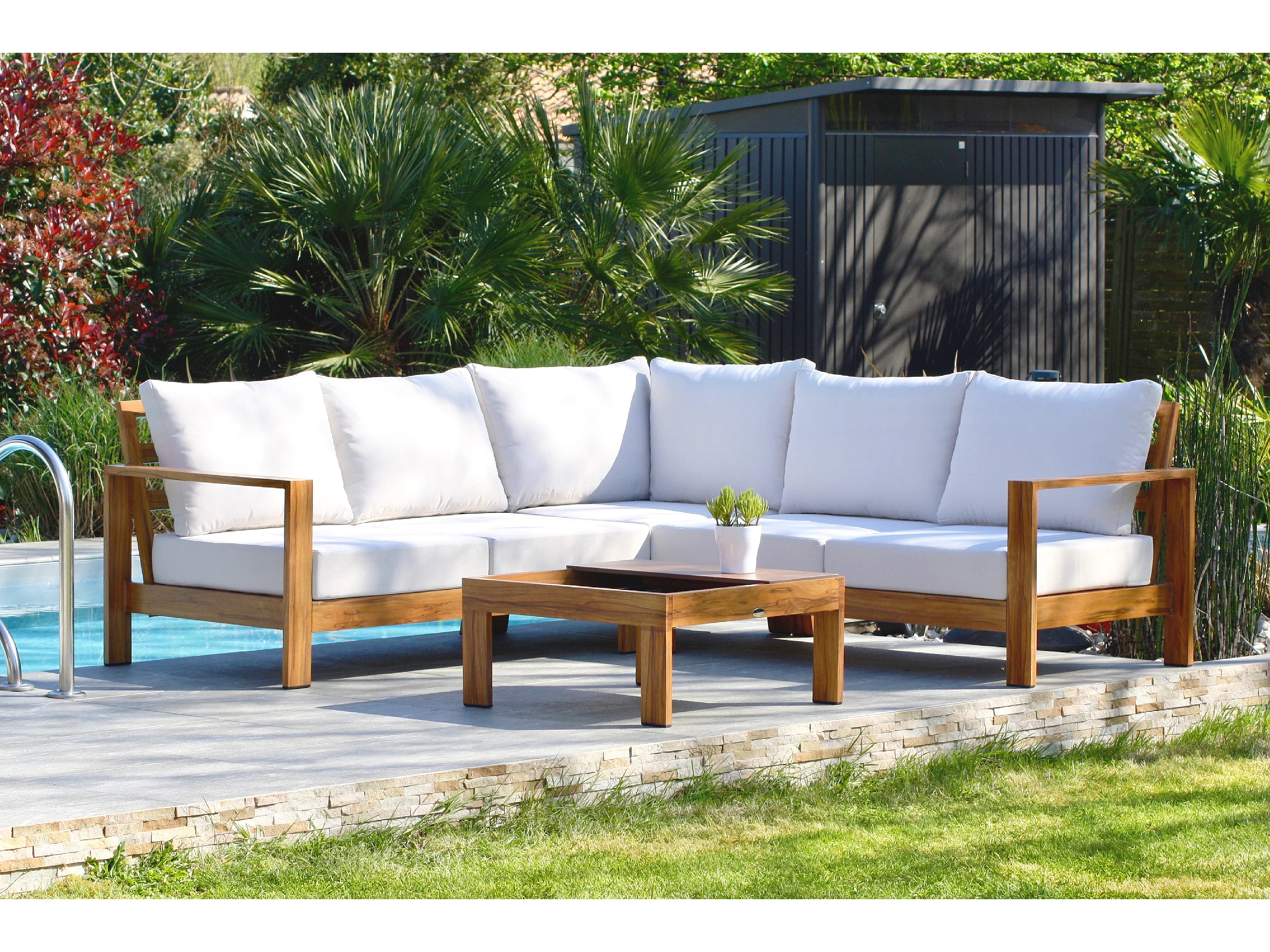 5-Sitzer-Eckgartenmöbel, Aluminium, Holzeffekt