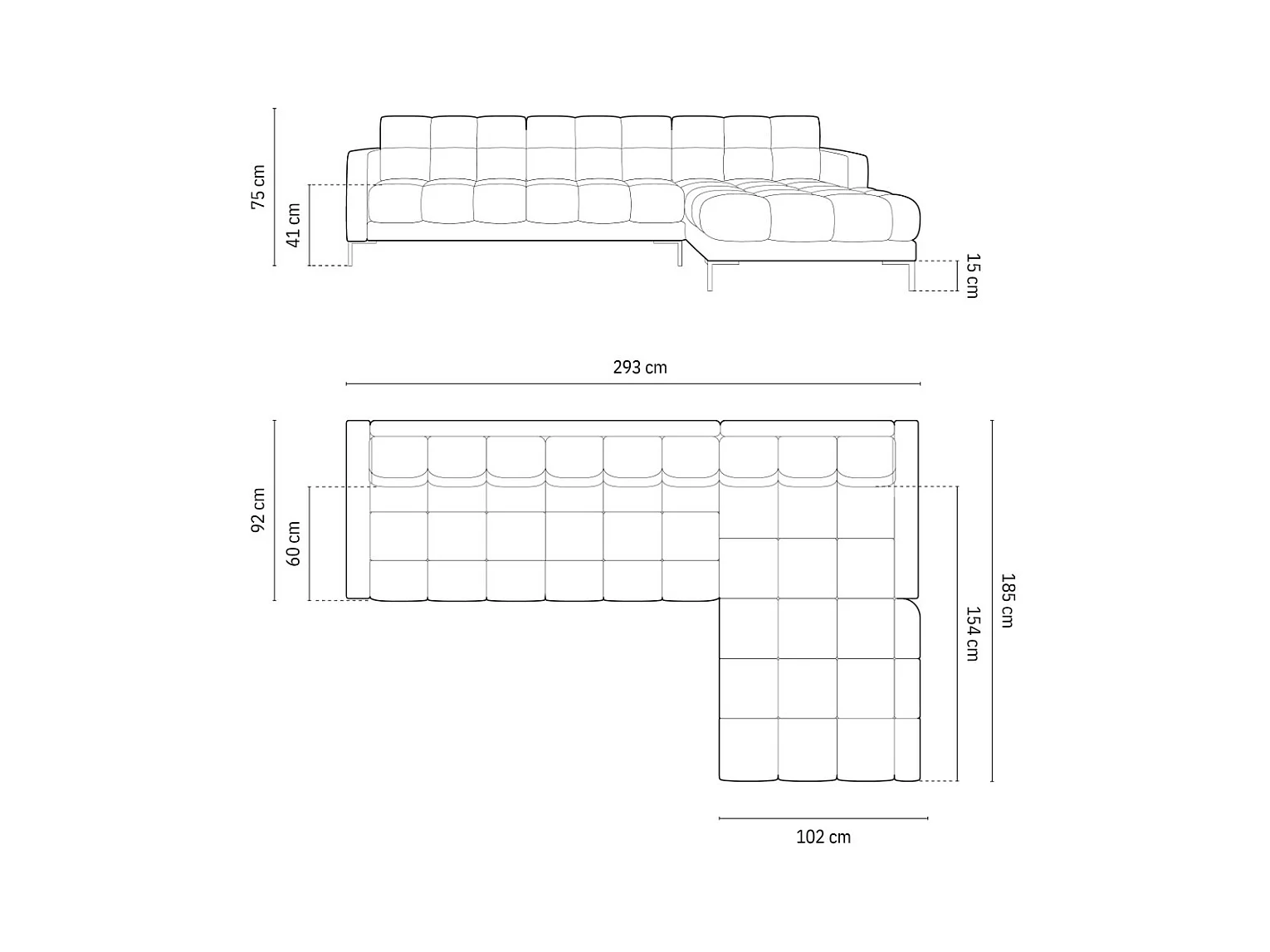 Cosmopolitan Design - 5-Sitzer Ecksofa rechts "Bali" aus strukturiertem Stoff leichtes beige - 293x185x75cm
