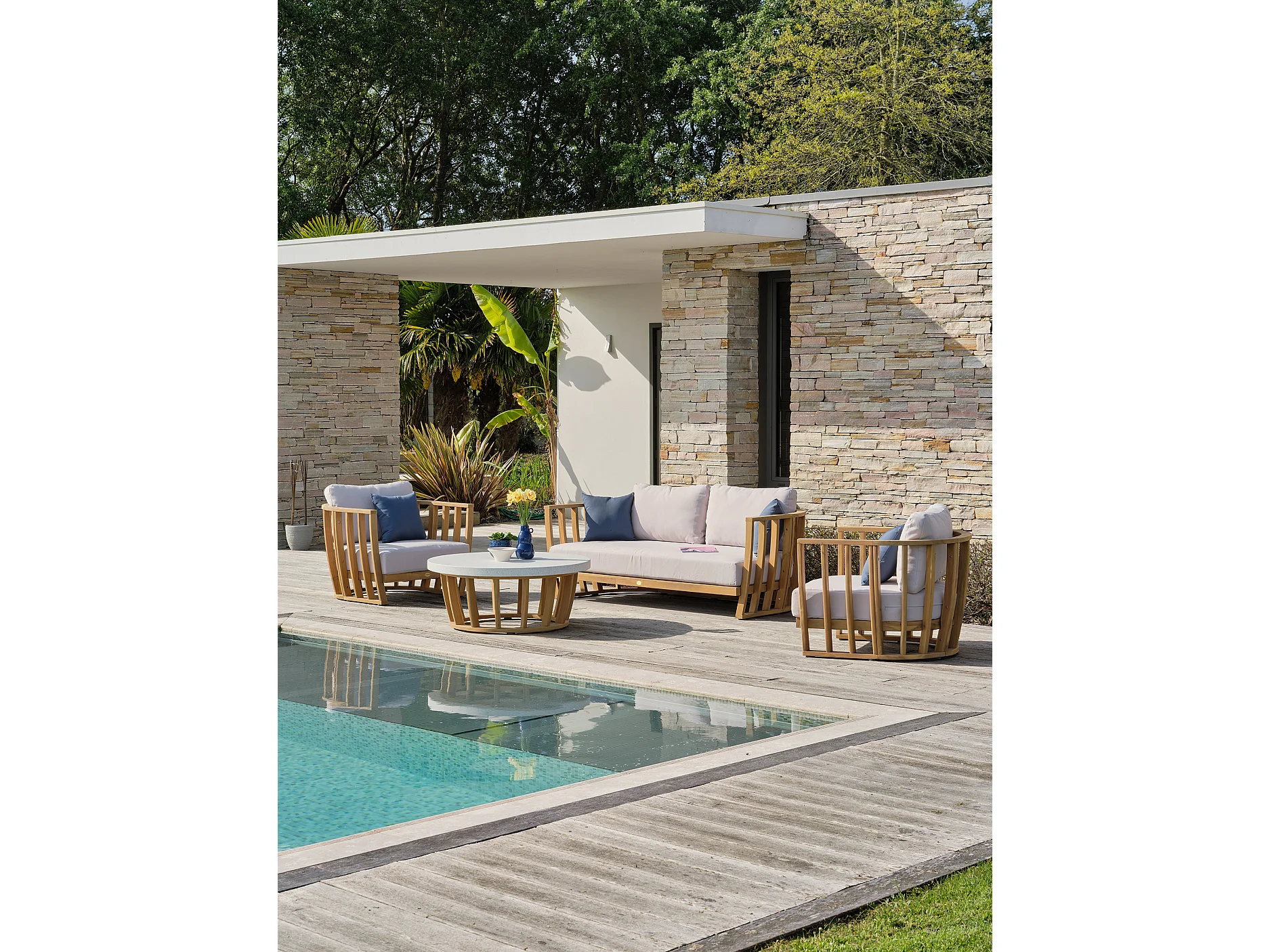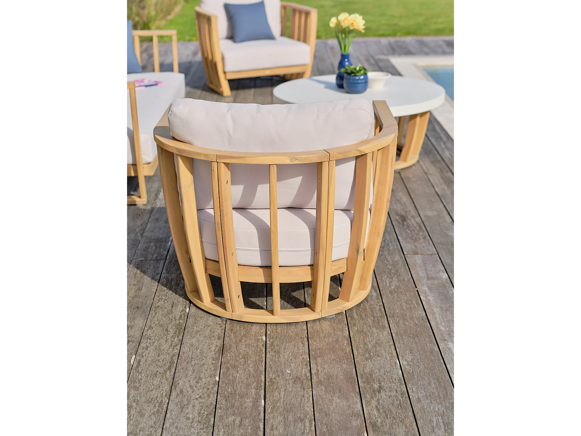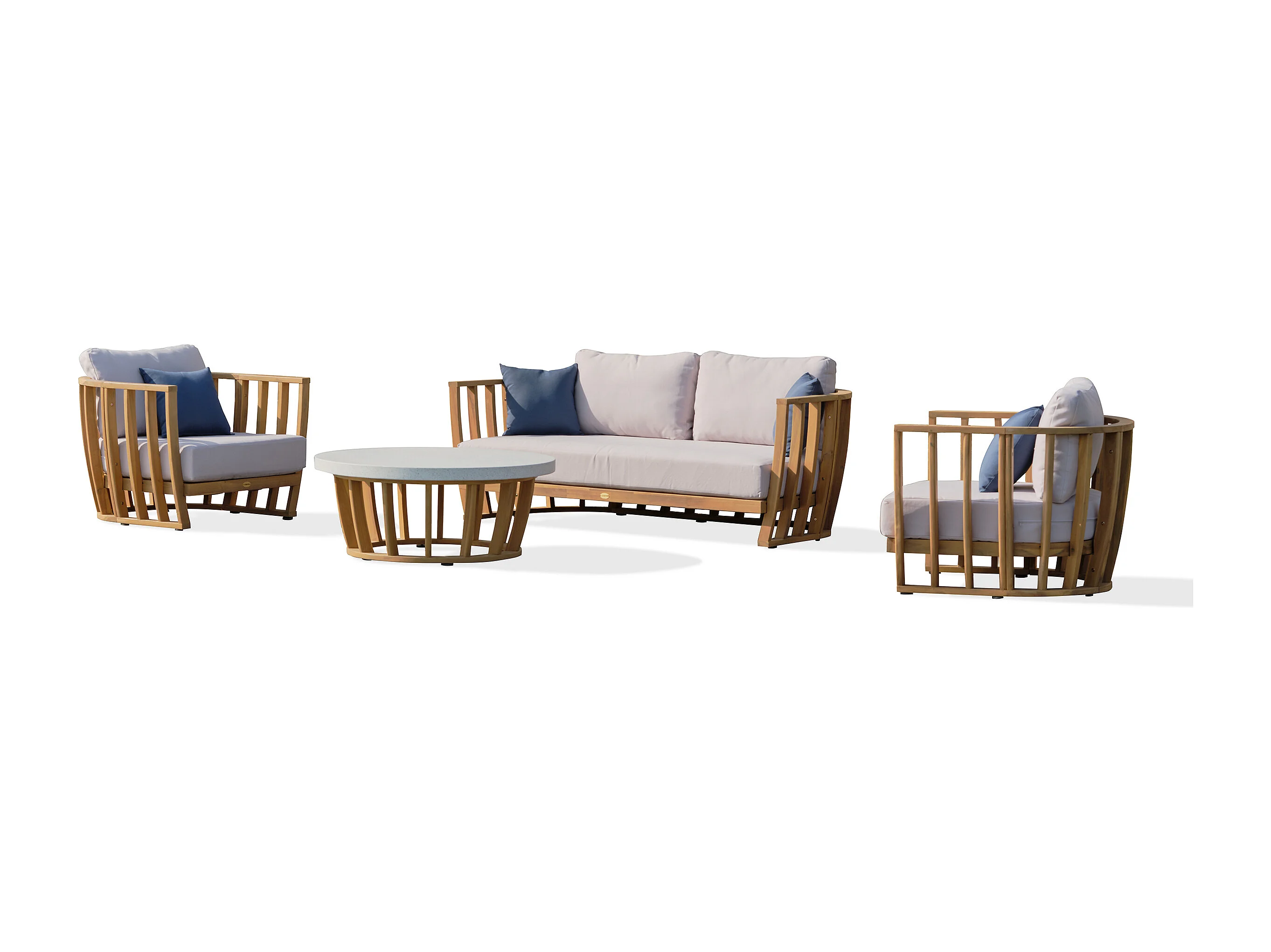 5-Sitzer-Gartenmöbel aus Akazienholz, Platte in Betonoptik