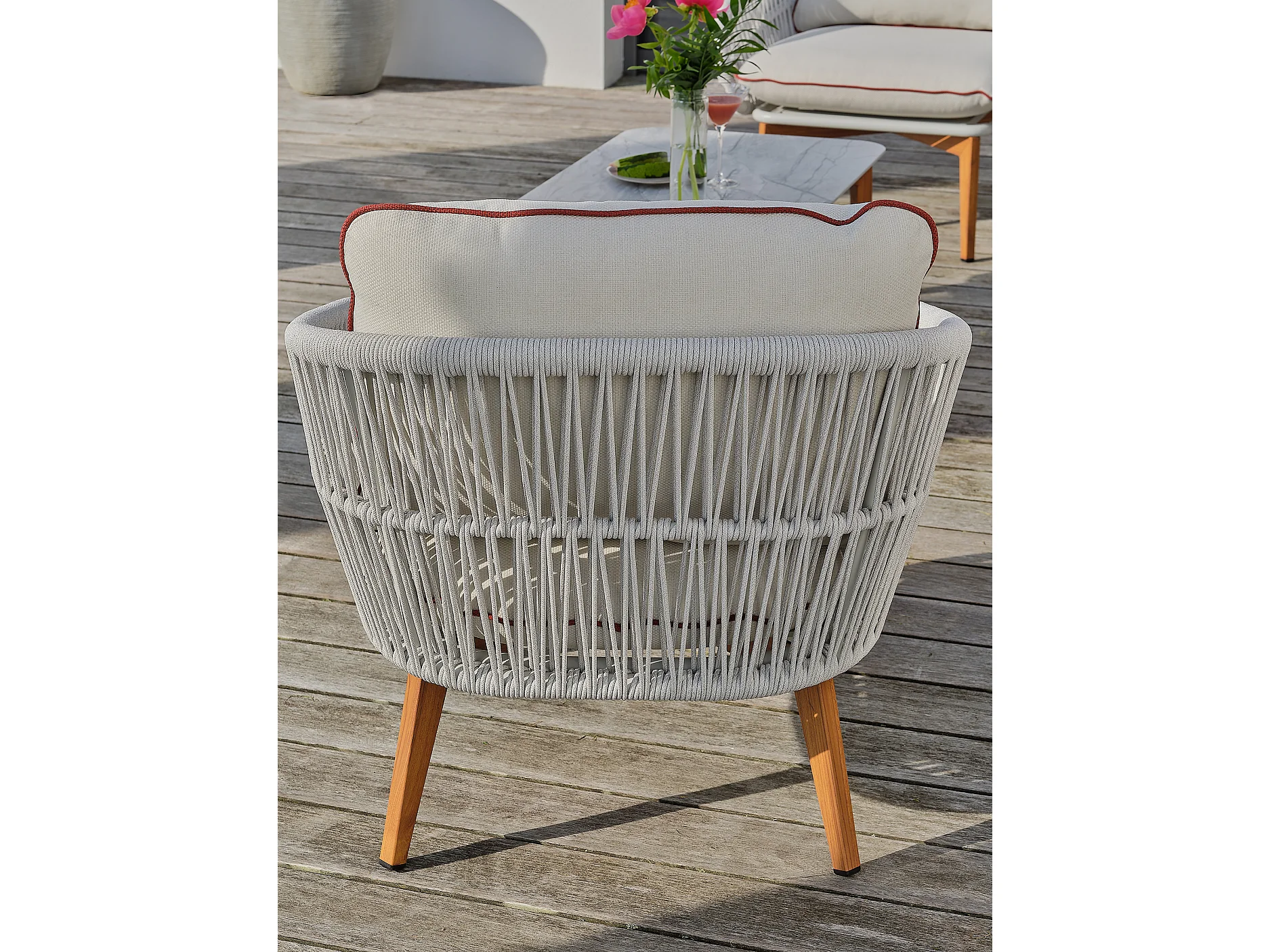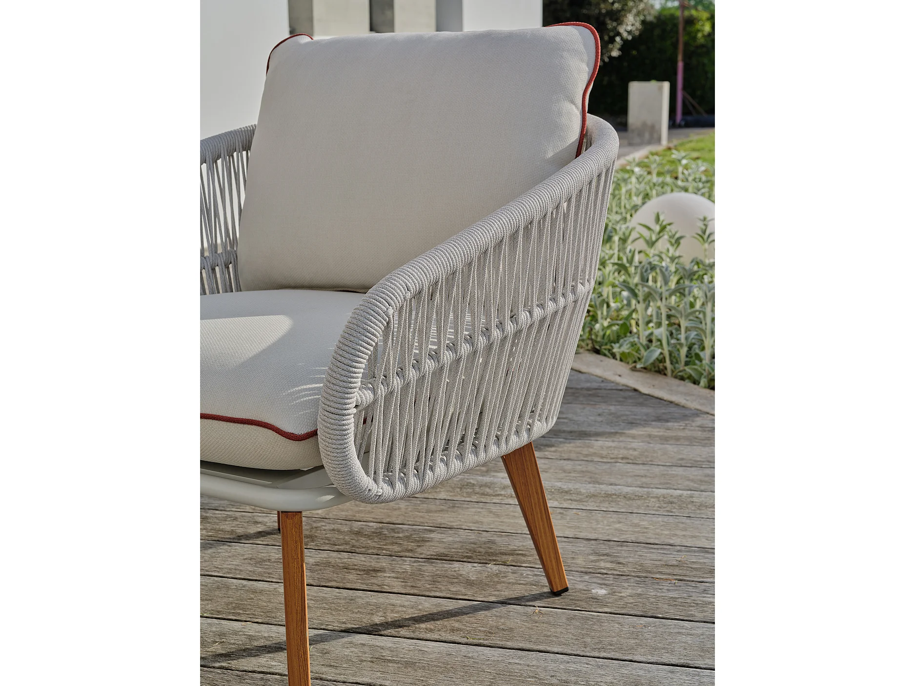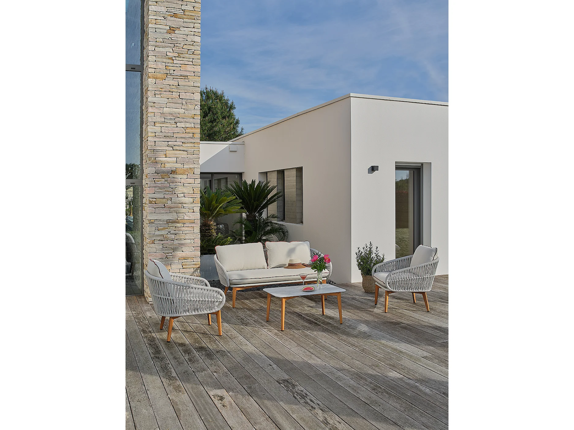 5-Sitzer-Gartenmöbel aus Holzimitat und geflochtenem Seil