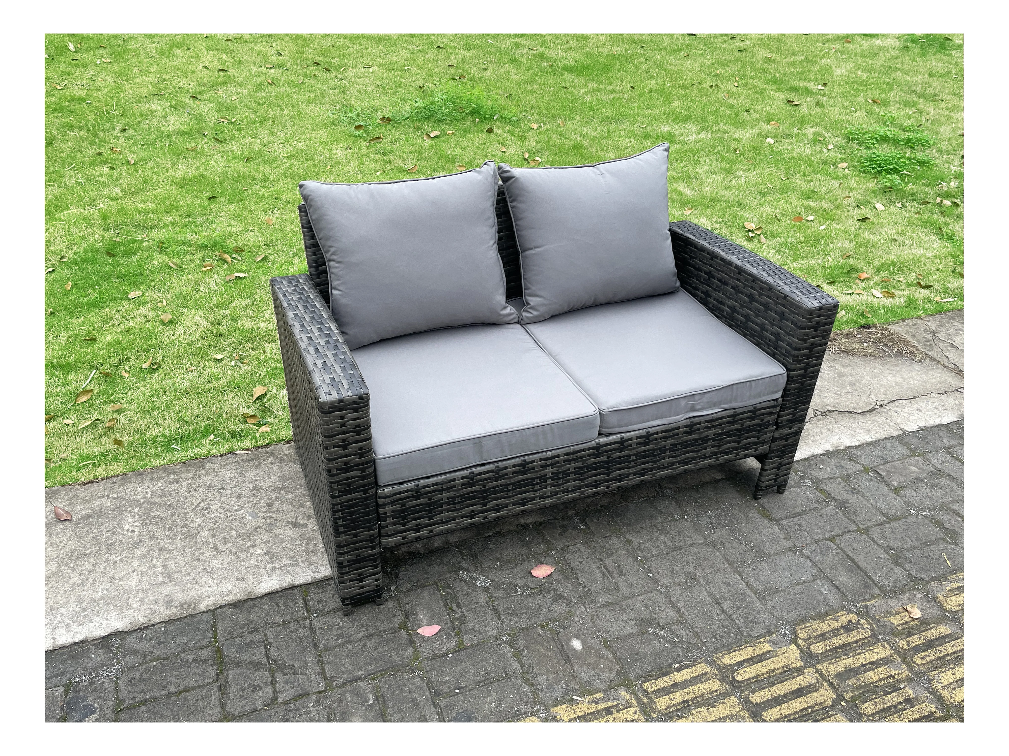 5-Sitzer Polyrattan Garten Esstisch Set Gartenmöbel Sofa mit Rechteckiger Esstisch Doppelsitz Sofa Dunkelgrau Gemischt