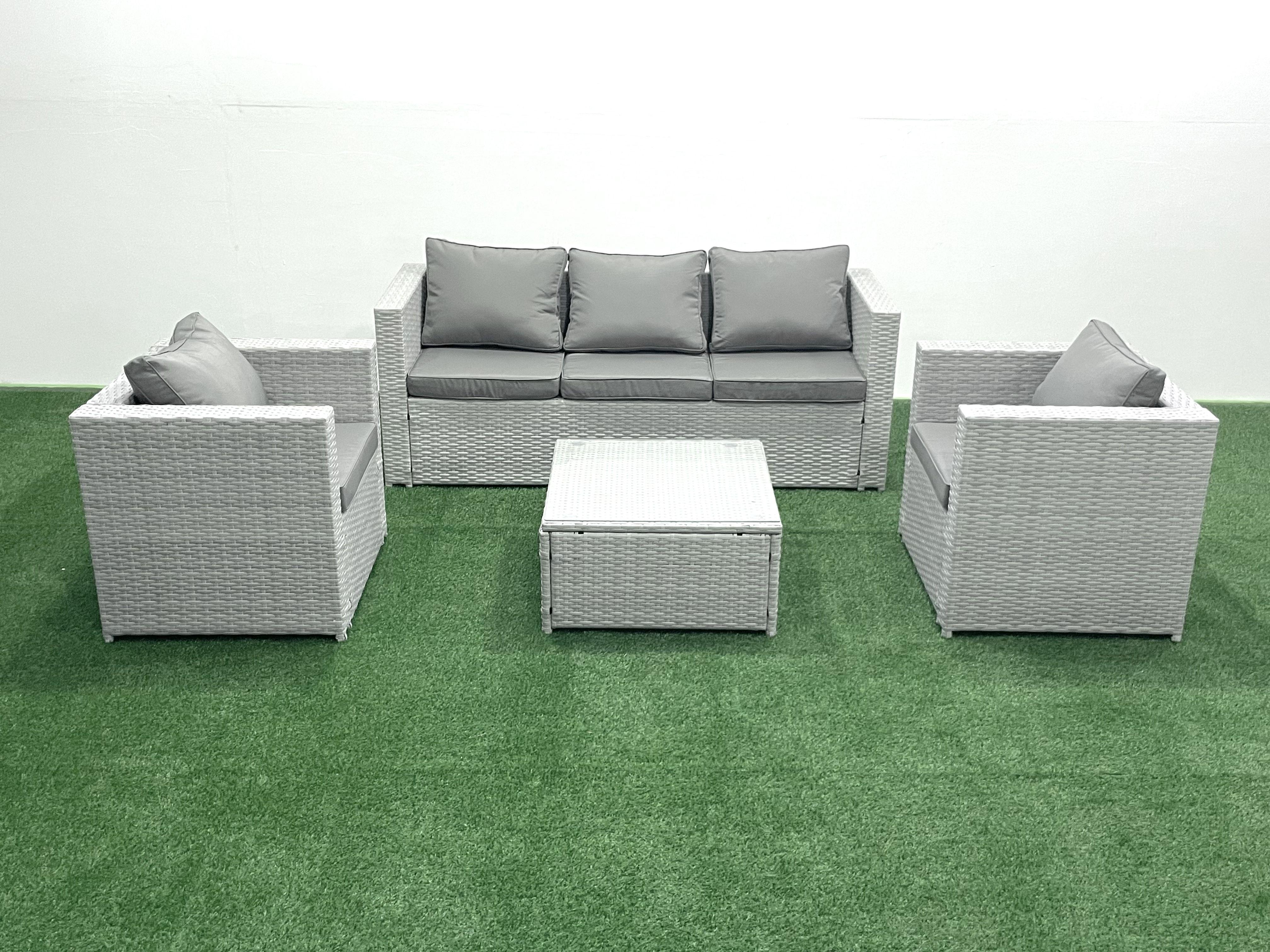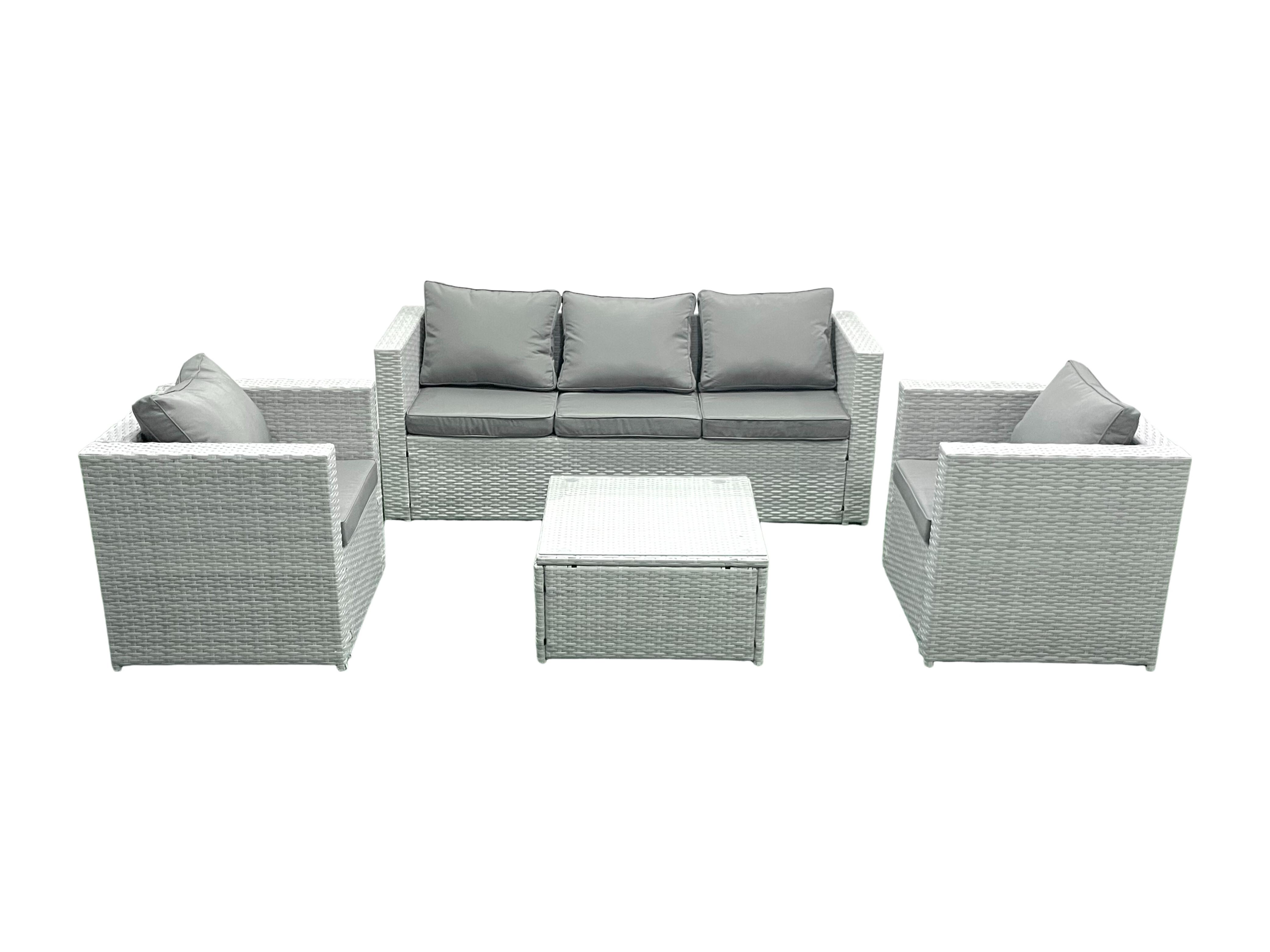 5-Sitzer Polyrattan Gartenmöbel Set mit 3-Sitzer Sofa 2 Sesseln Quadratischer Couchtisch Hellgrau gemischt