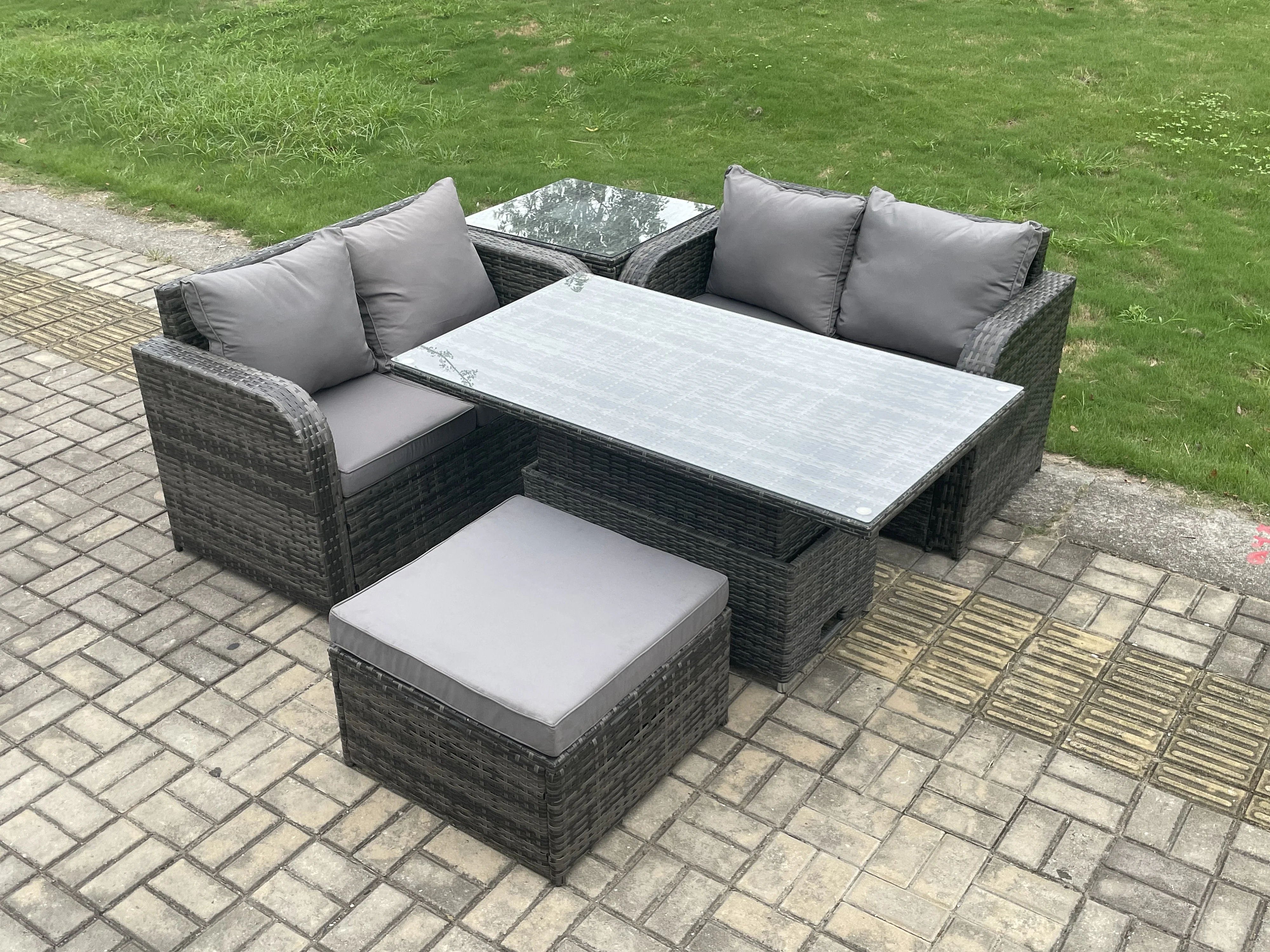 5-Sitzer Polyrattan Gartenmöbel Set mit Einstellbare Höhe Esstisch Dunkelgrau