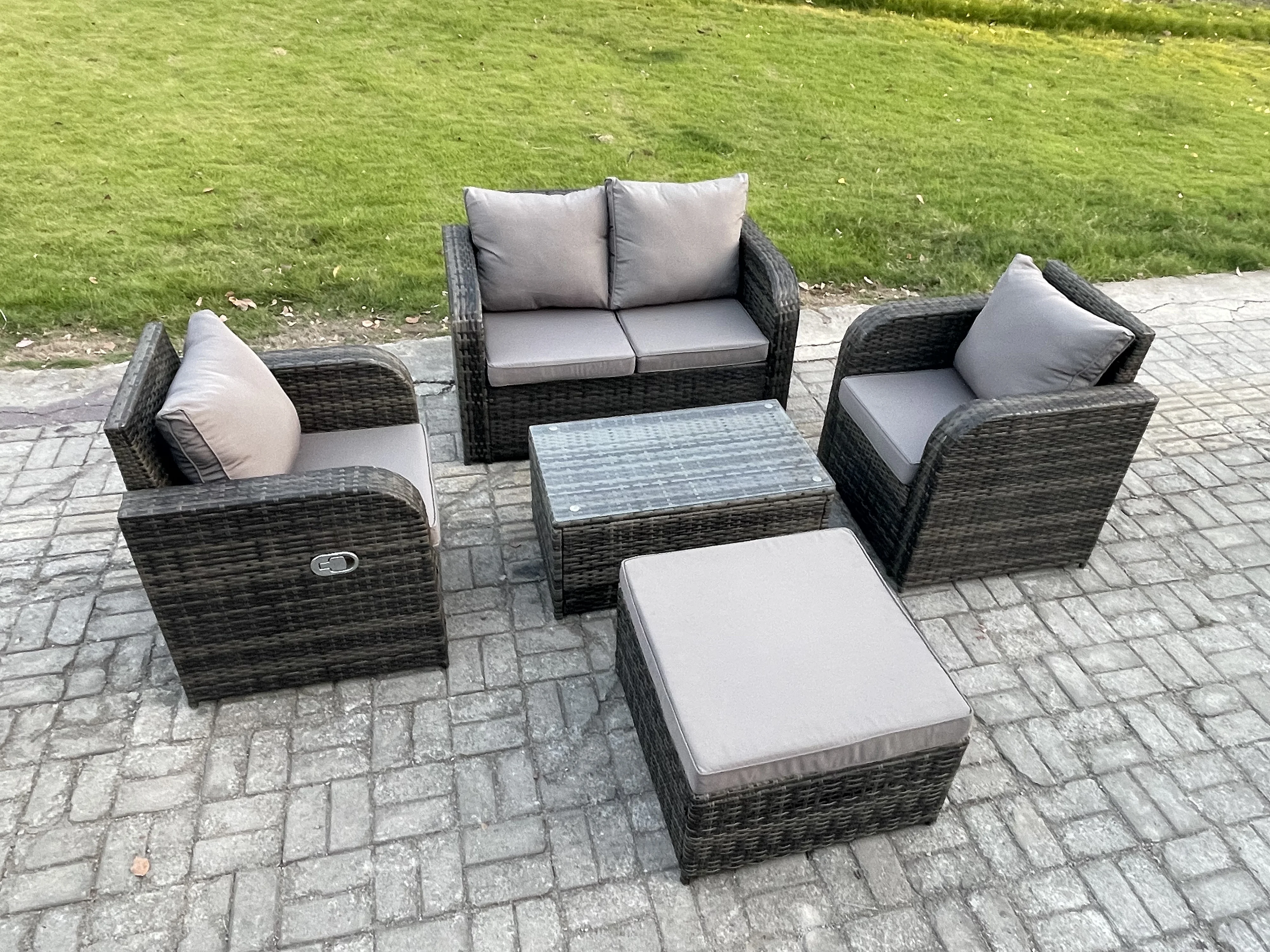 5-Sitzer Rattan Gartenmöbel Set mit Gartensofa Dunkelgrau