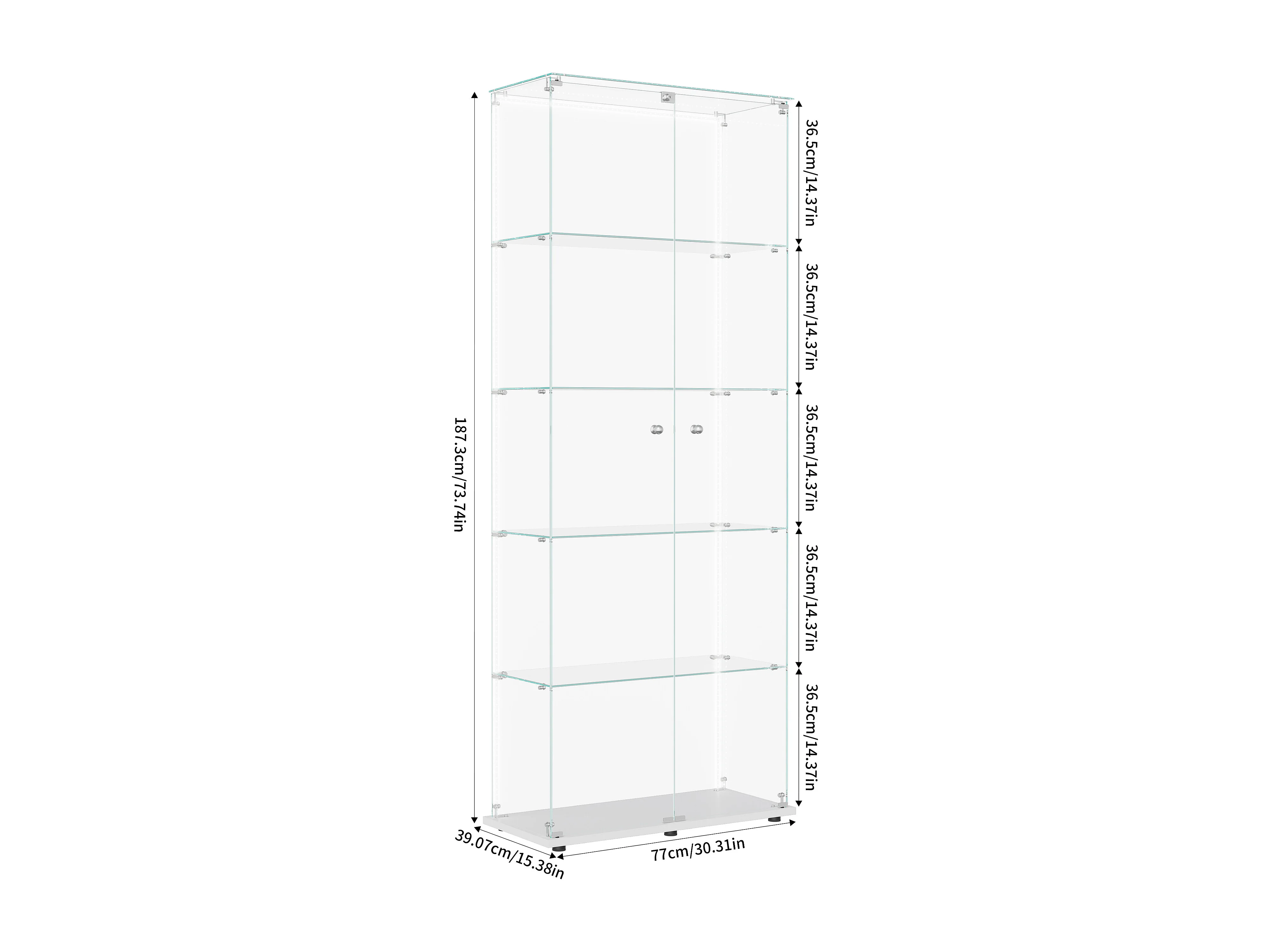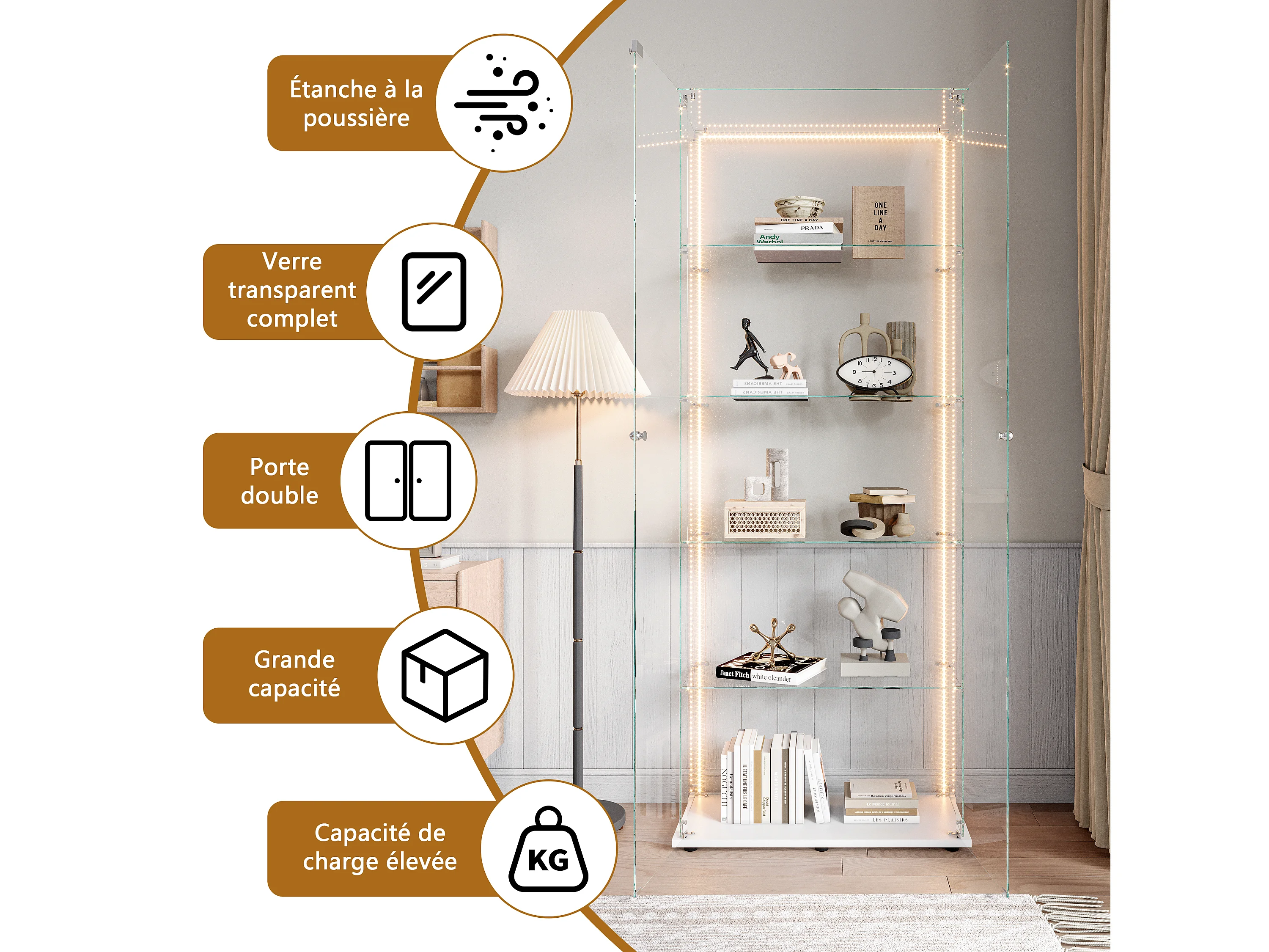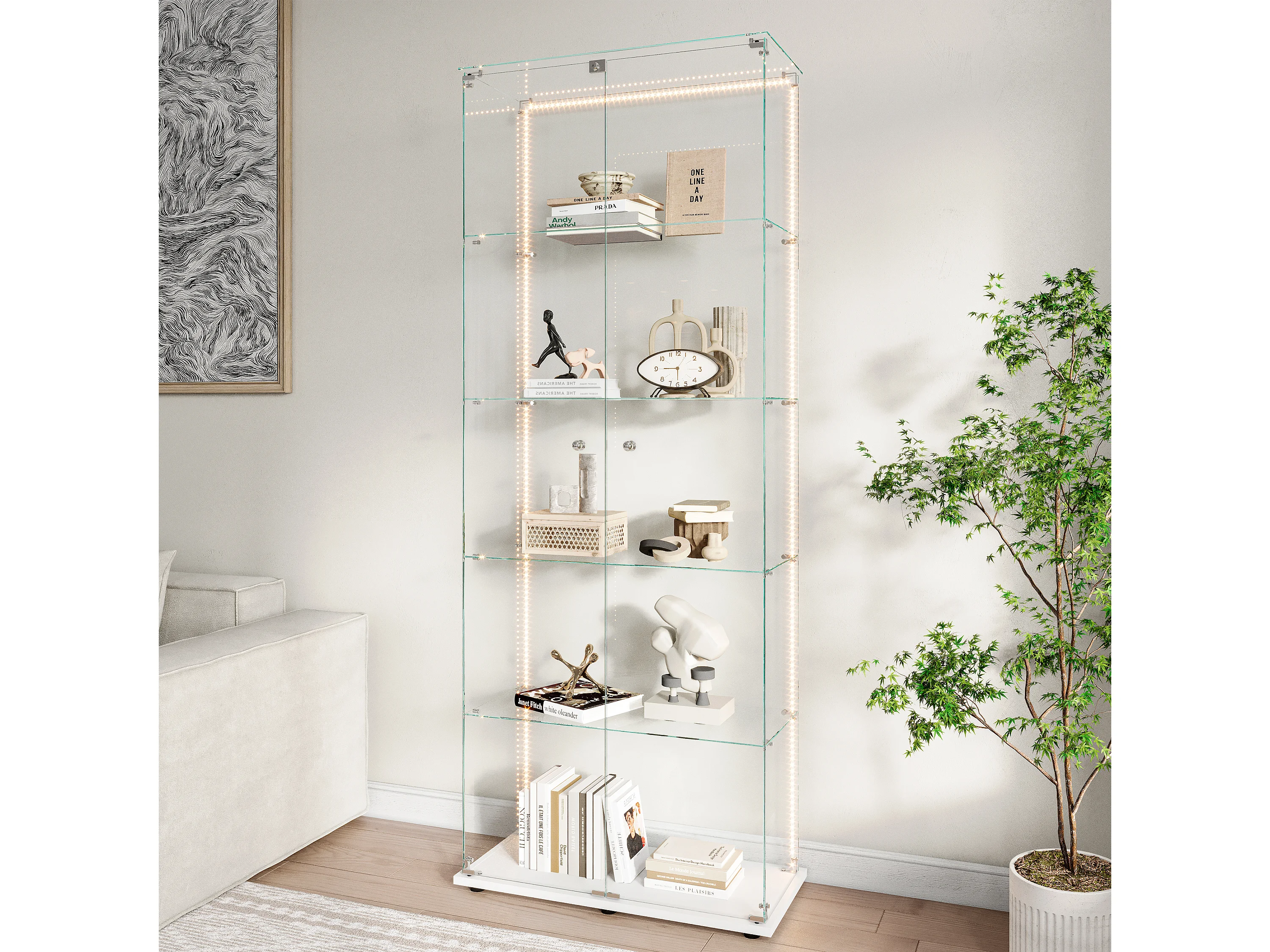 5-stöckige Glasvitrine mit individuell anpassbarer LED-Beleuchtung – Weißer Sockel