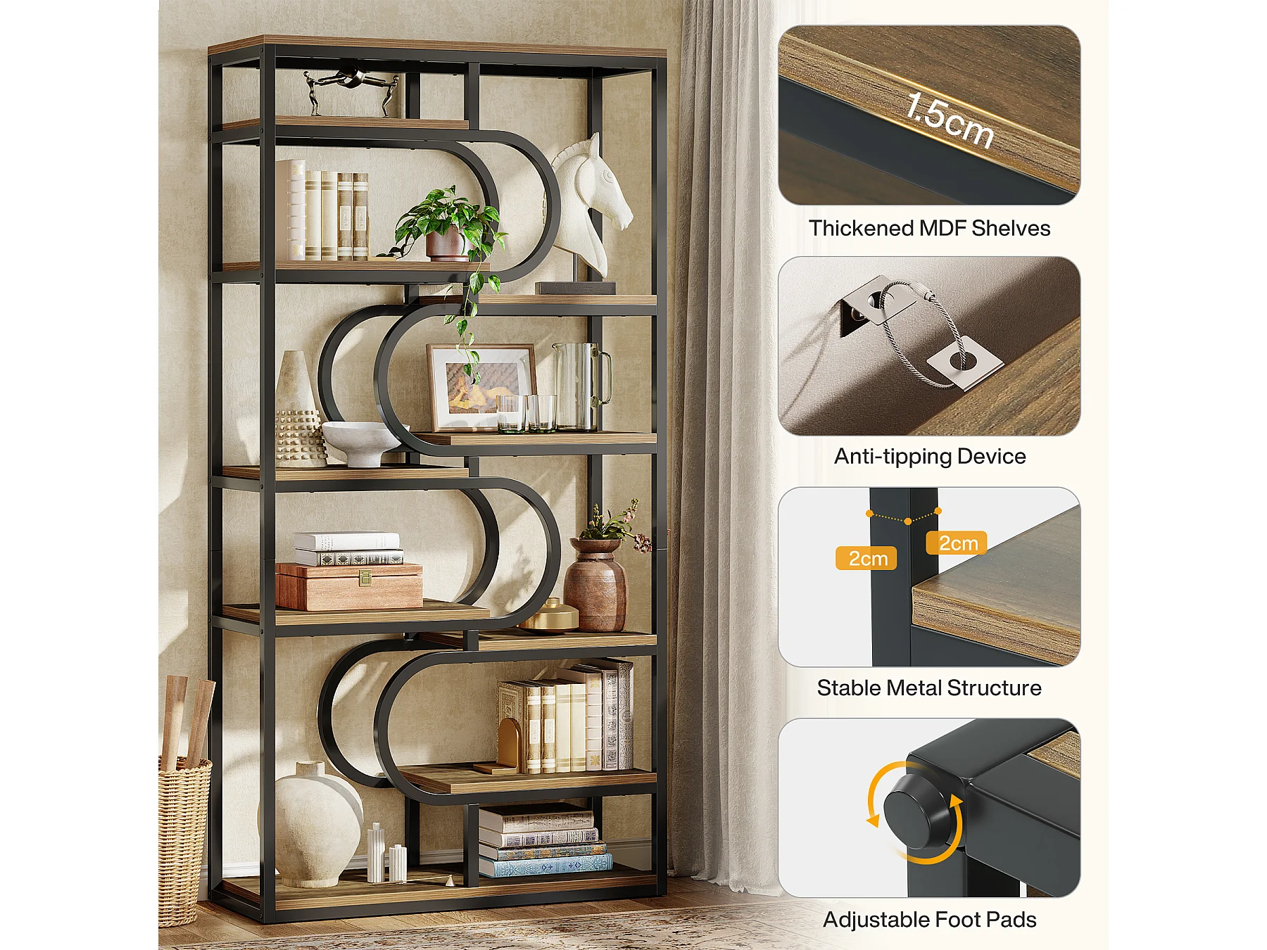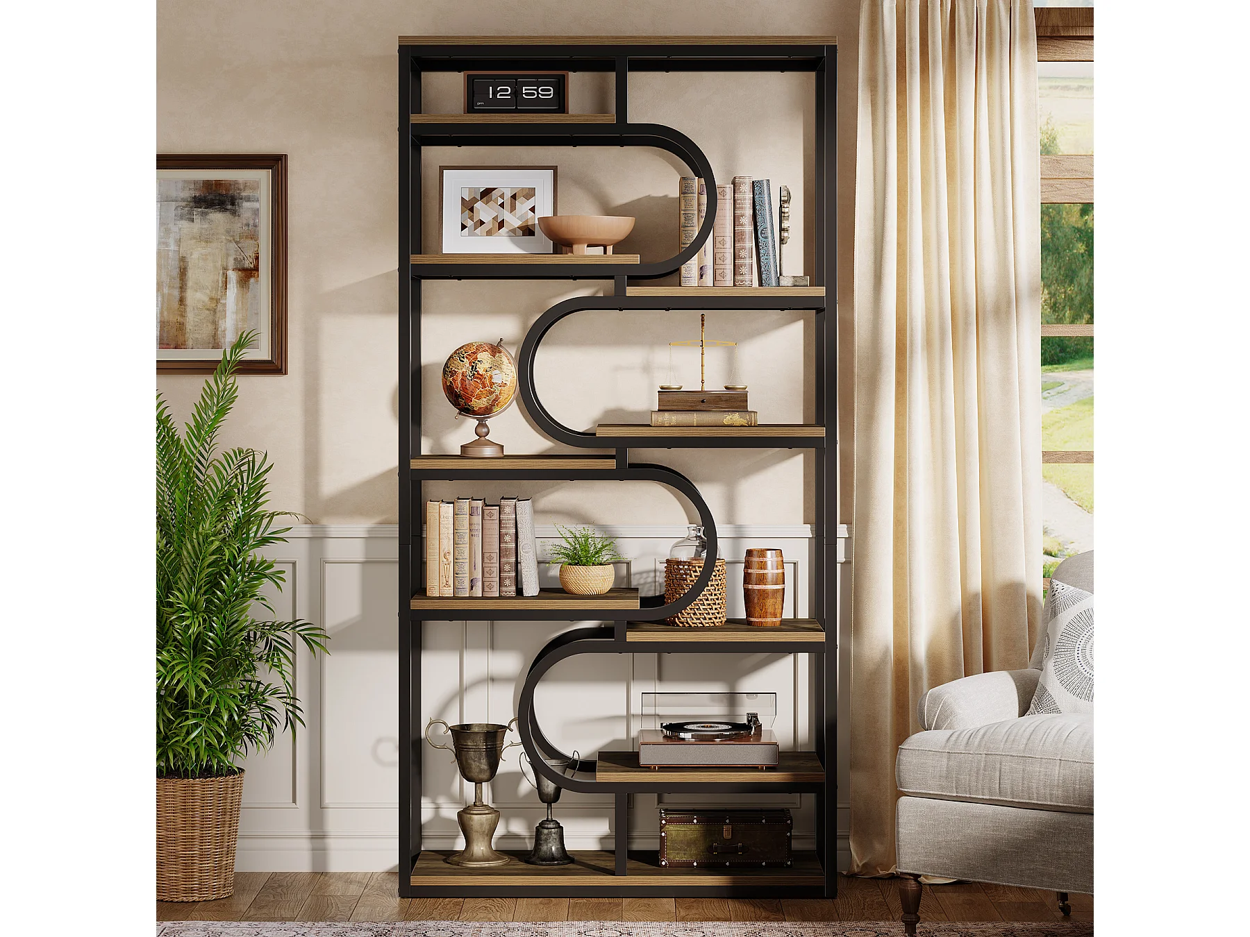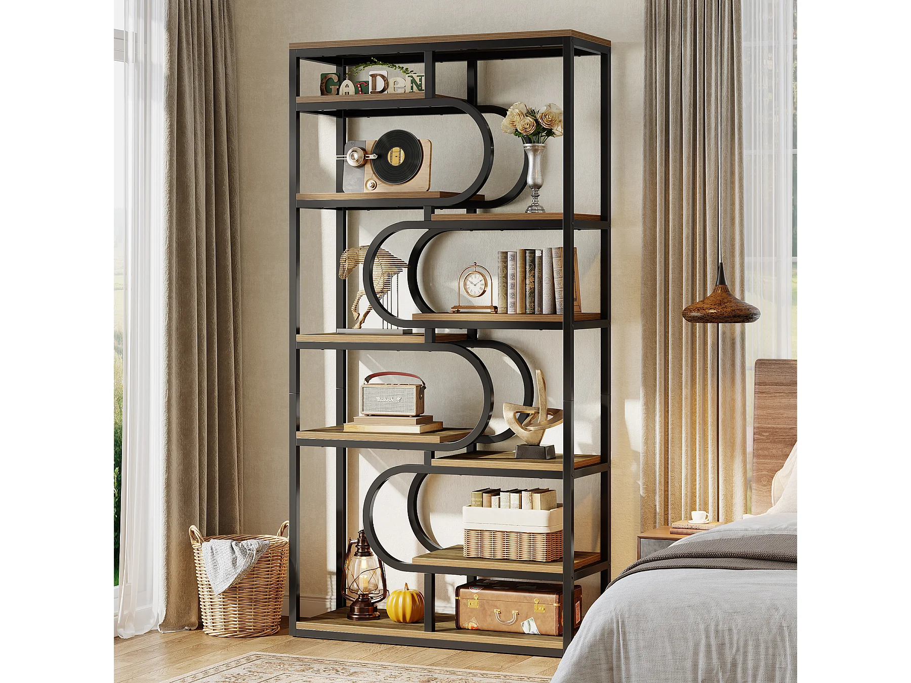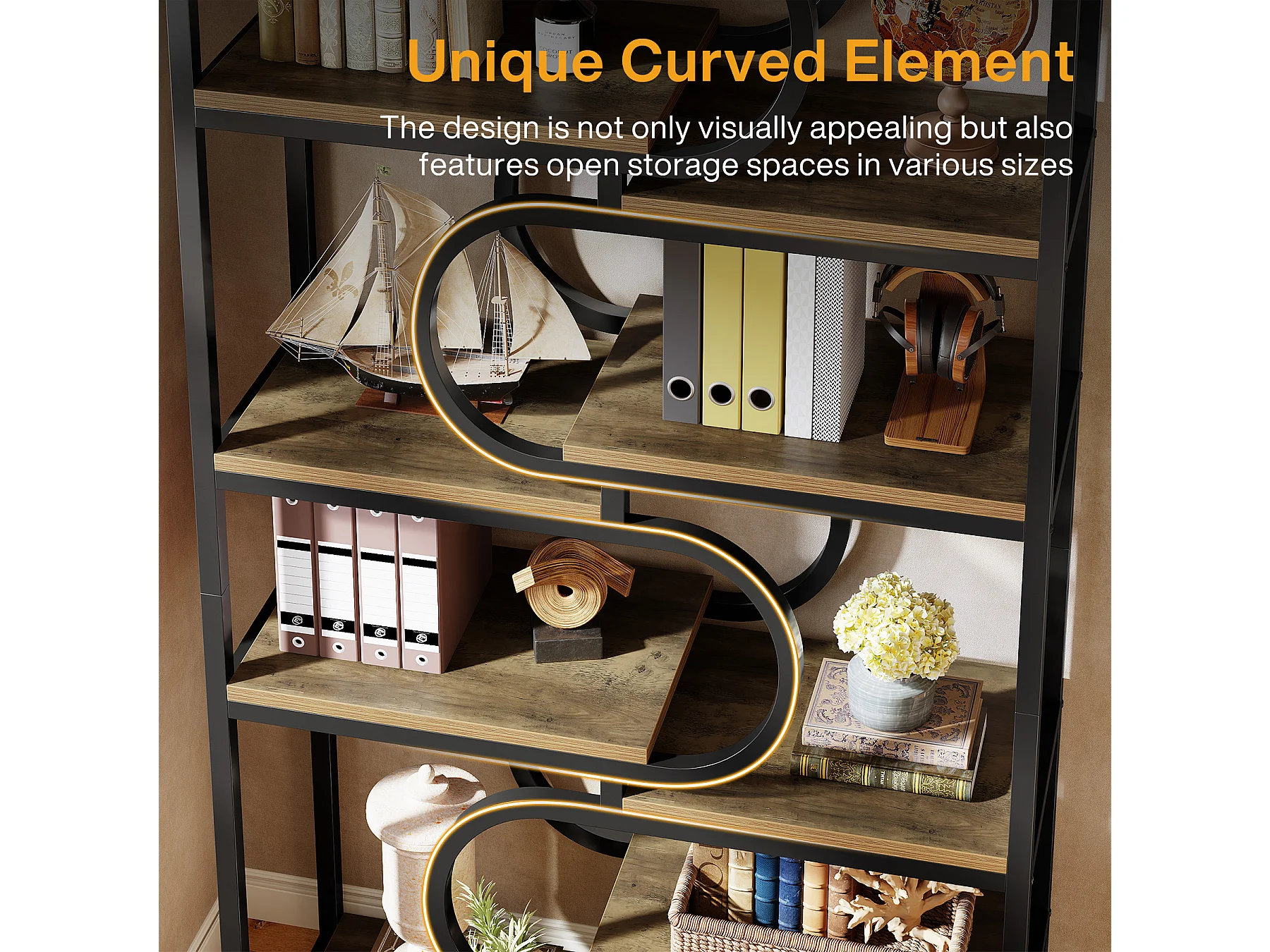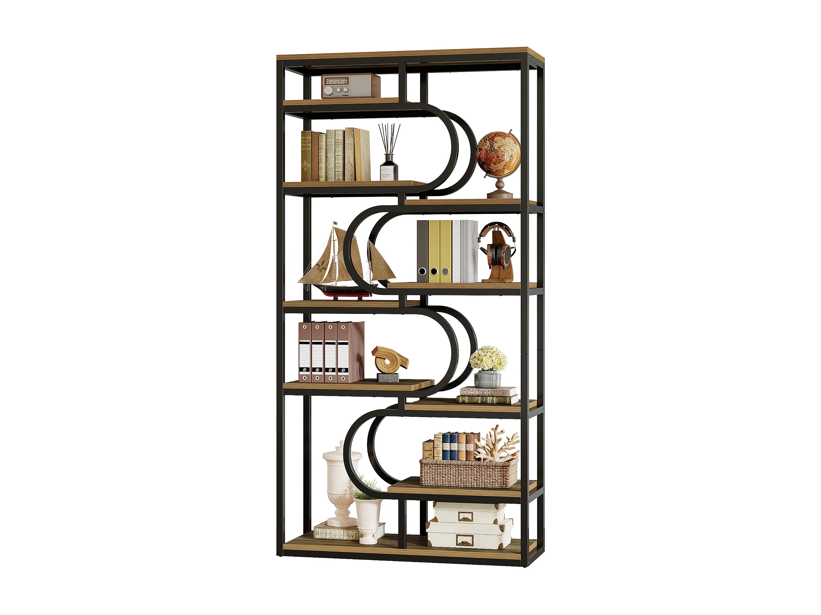 5-stufiger Industrie-Bücherregal, 181 cm hohes Bücherregal mit stabiler Metallrahmen, freistehende Ablageplatte