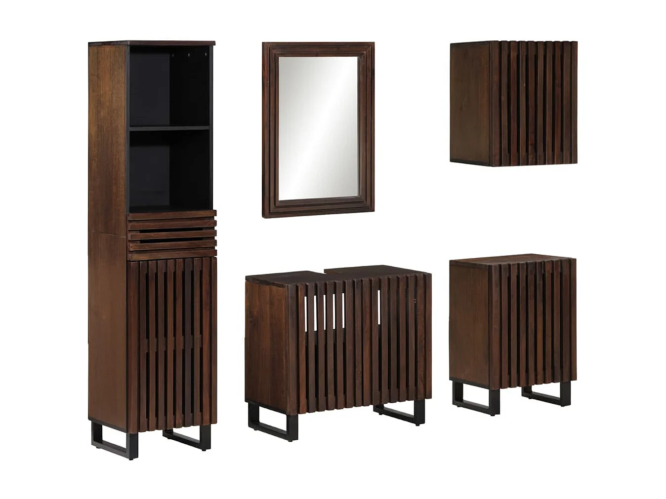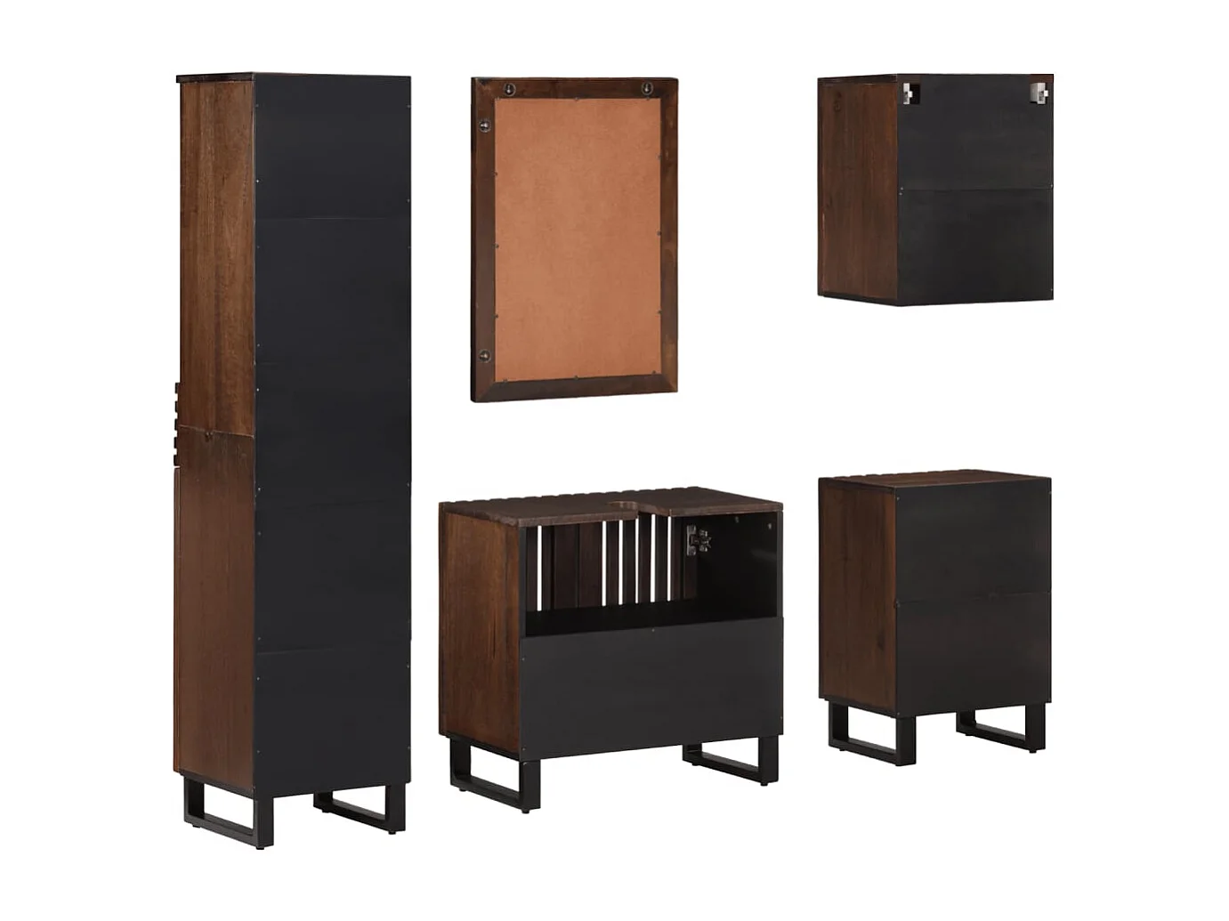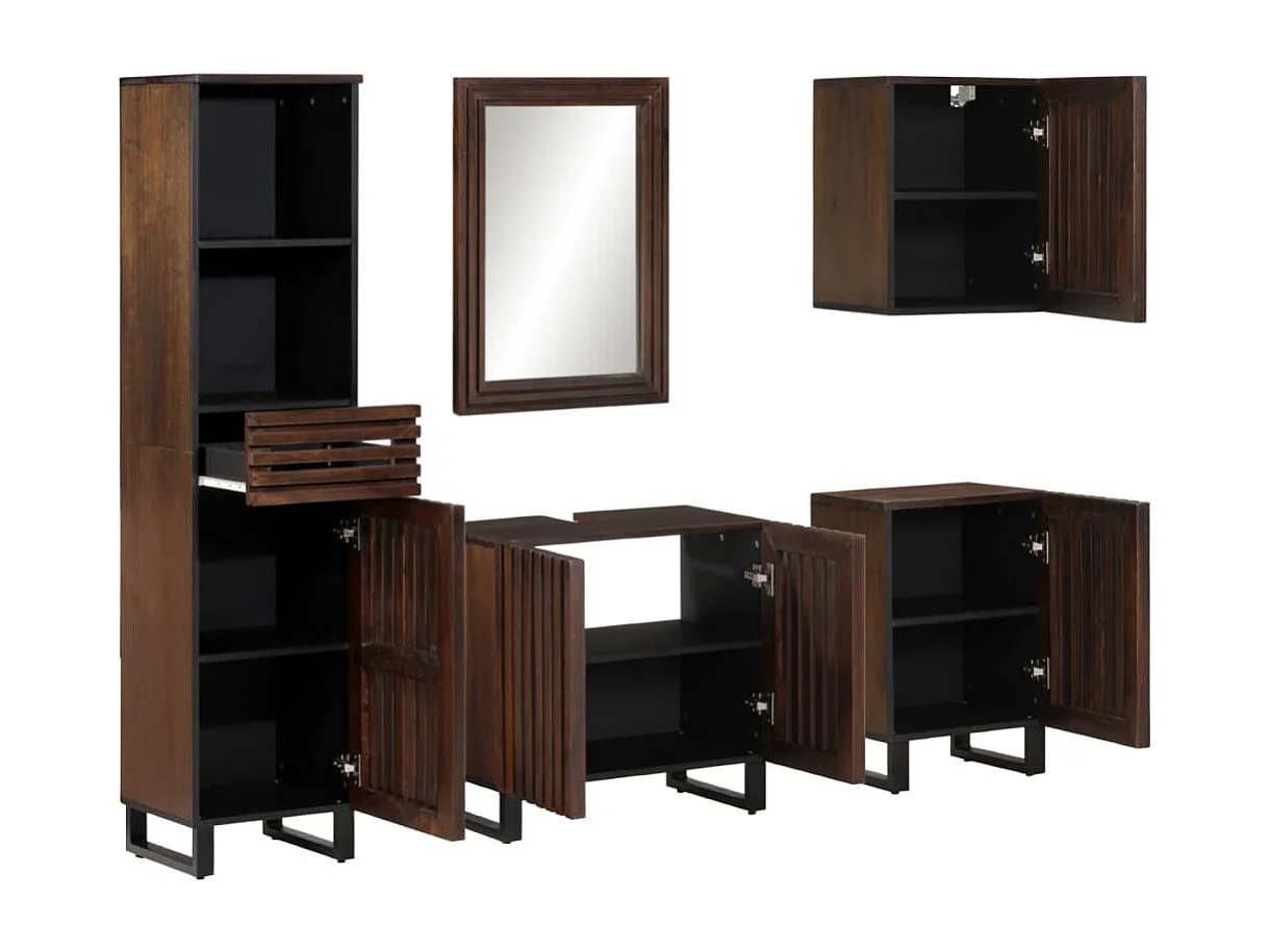 5-teiliges Badmöbelset aus massivem Mangoholz