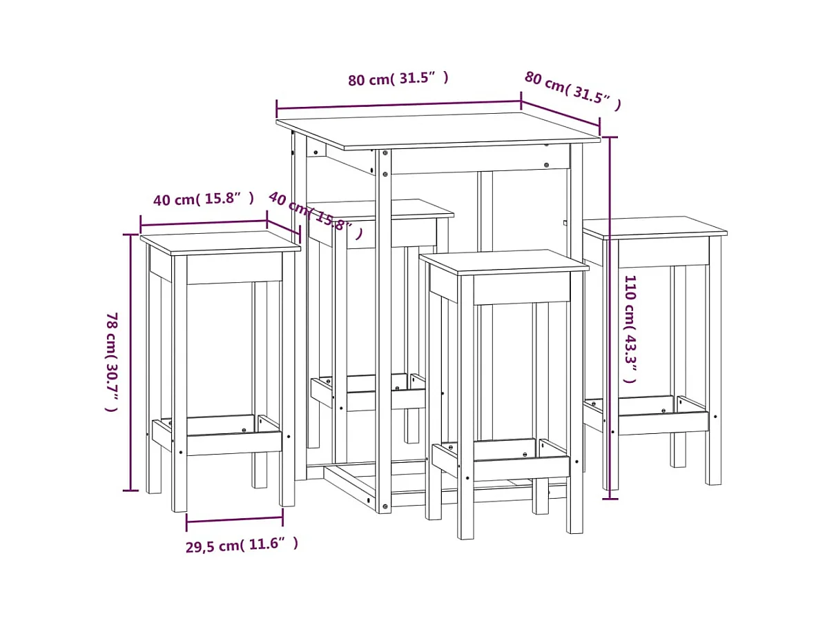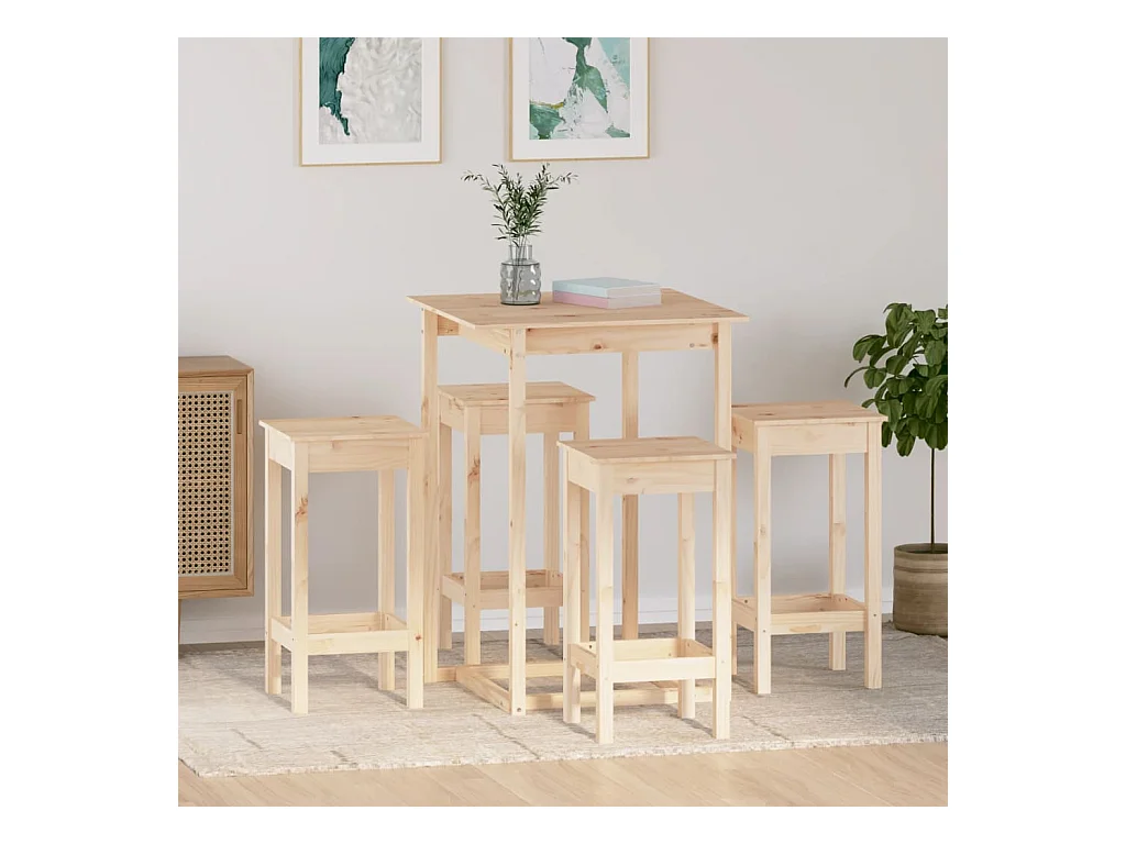 5-teiliges Bar-Set aus massivem Kiefernholz