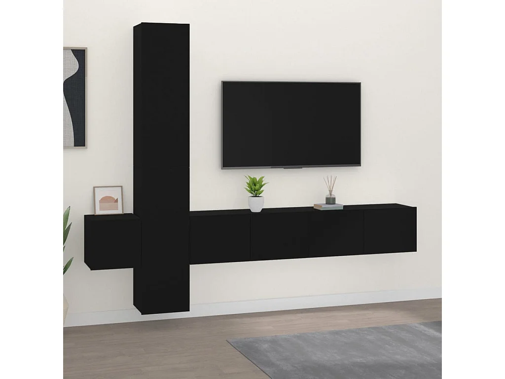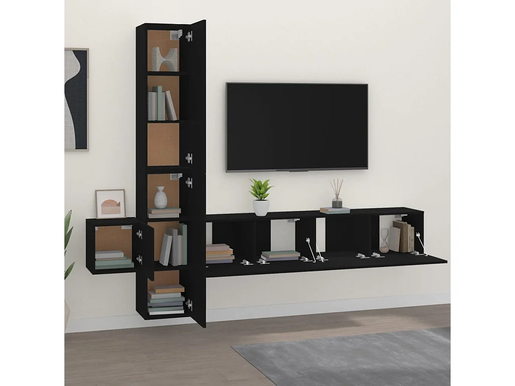 5-teiliges TV-Ständer-Set aus schwarzem Holzwerkstoff