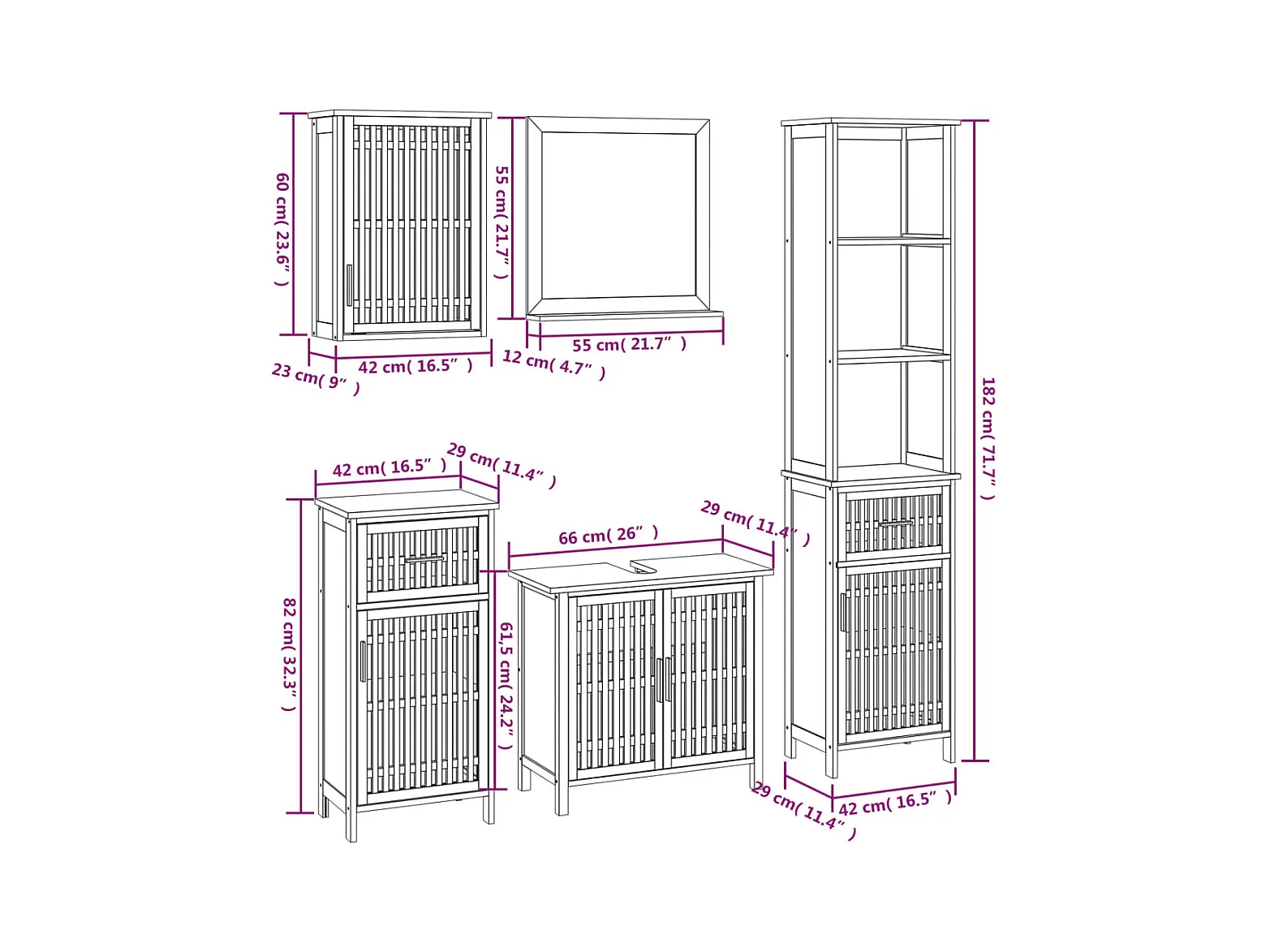 5-tlg. Badmöbel-Set Massivholz Nussbaum