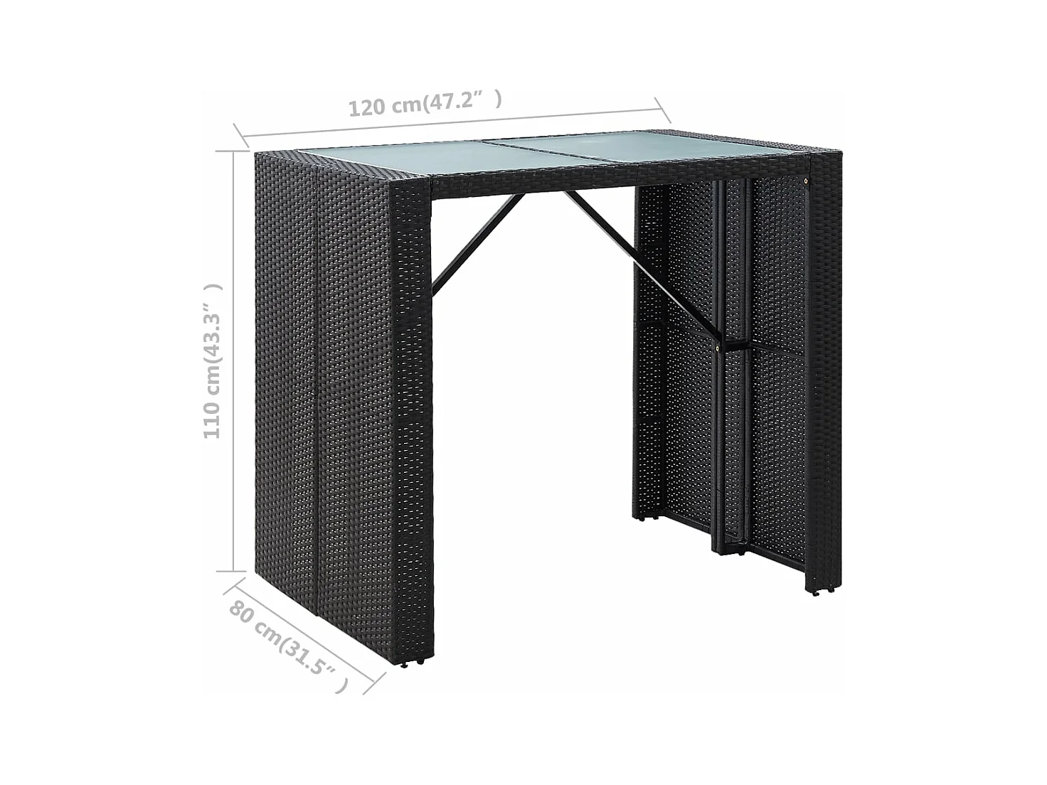 5-tlg. Garten-Bar-Set Poly Rattan und Glas Schwarz