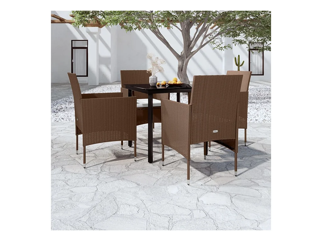 5-tlg. Garten-Essgruppe,Gartensitzgruppe mit Kissen Braun und Schwarz -gkd57163