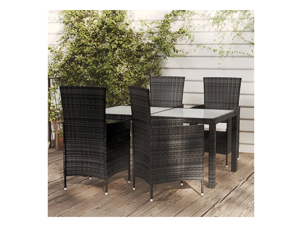 5-tlg. Garten-Essgruppe,Gartensitzgruppe mit Kissen Poly Rattan Schwarz -gkd61644