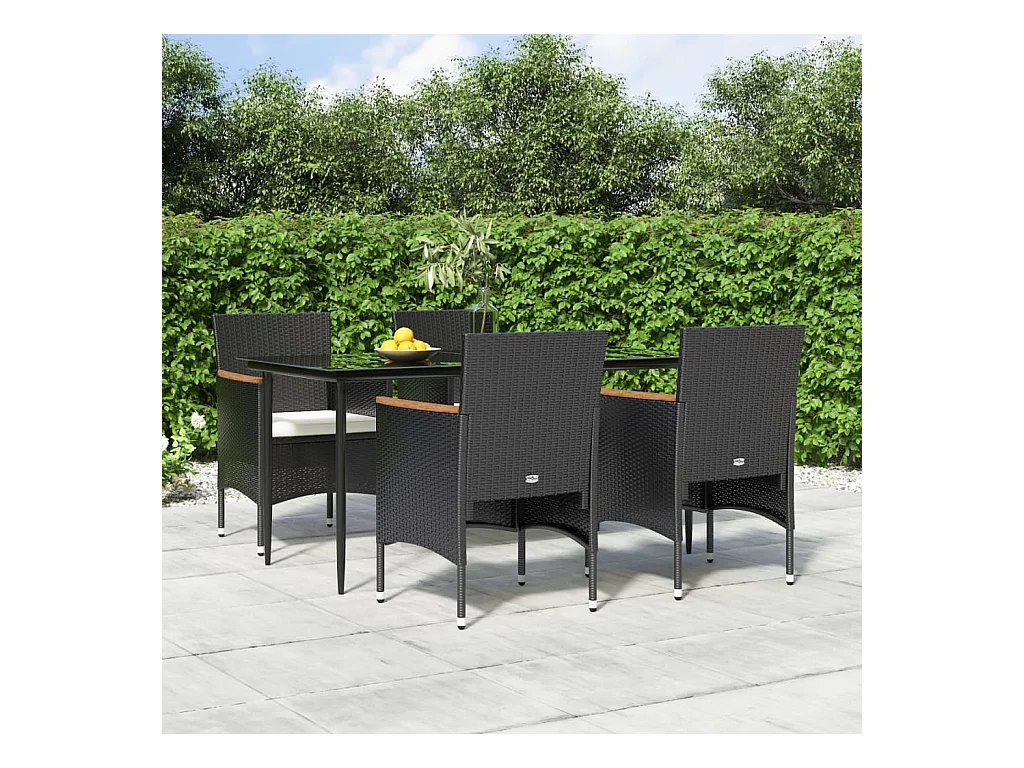 5-tlg. Garten-Essgruppe,Gartensitzgruppe mit Kissen Schwarz -gkd38512
