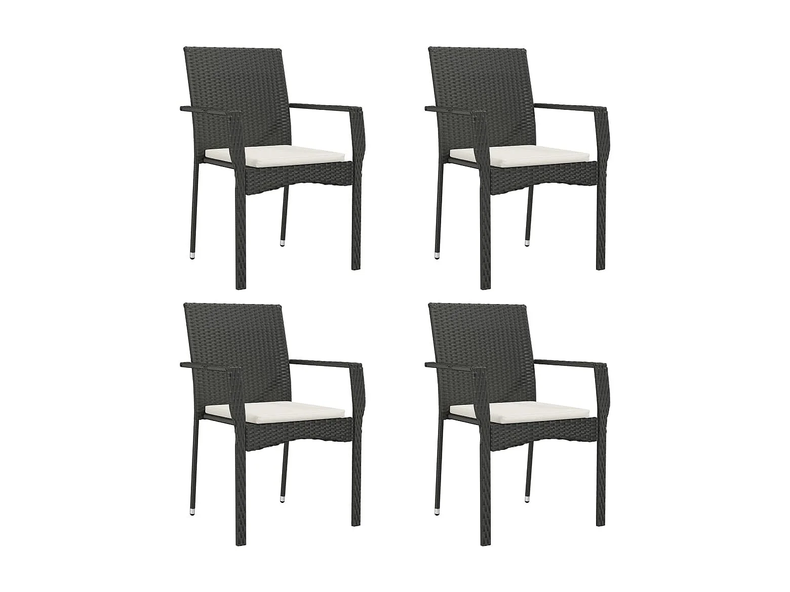 5-tlg. Garten-Essgruppe,Gartensitzgruppe mit Kissen Schwarz Poly Rattan -gkd35914