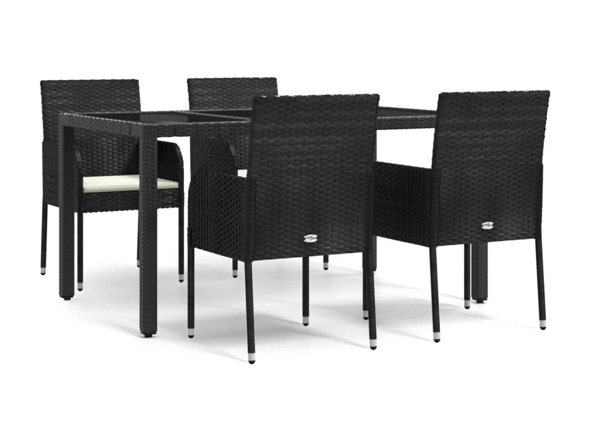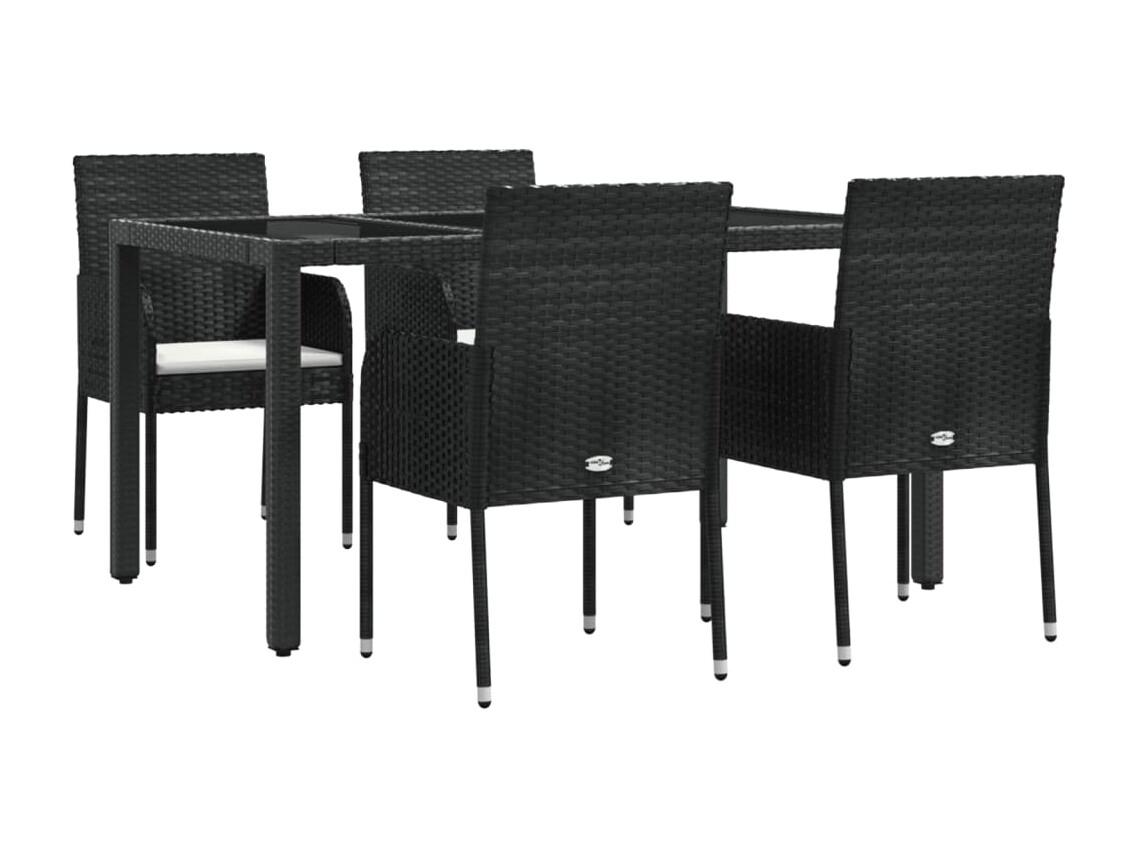 5-tlg. Garten-Essgruppe,Gartensitzgruppe mit Kissen Schwarz Poly Rattan -gkd87063