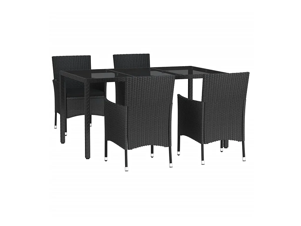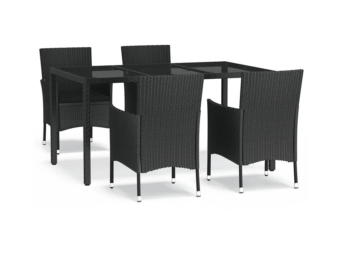 5-tlg. Garten-Essgruppe,Gartensitzgruppe mit Kissen Schwarz Poly Rattan -gkd90692