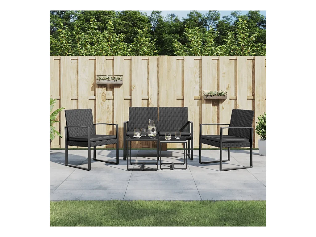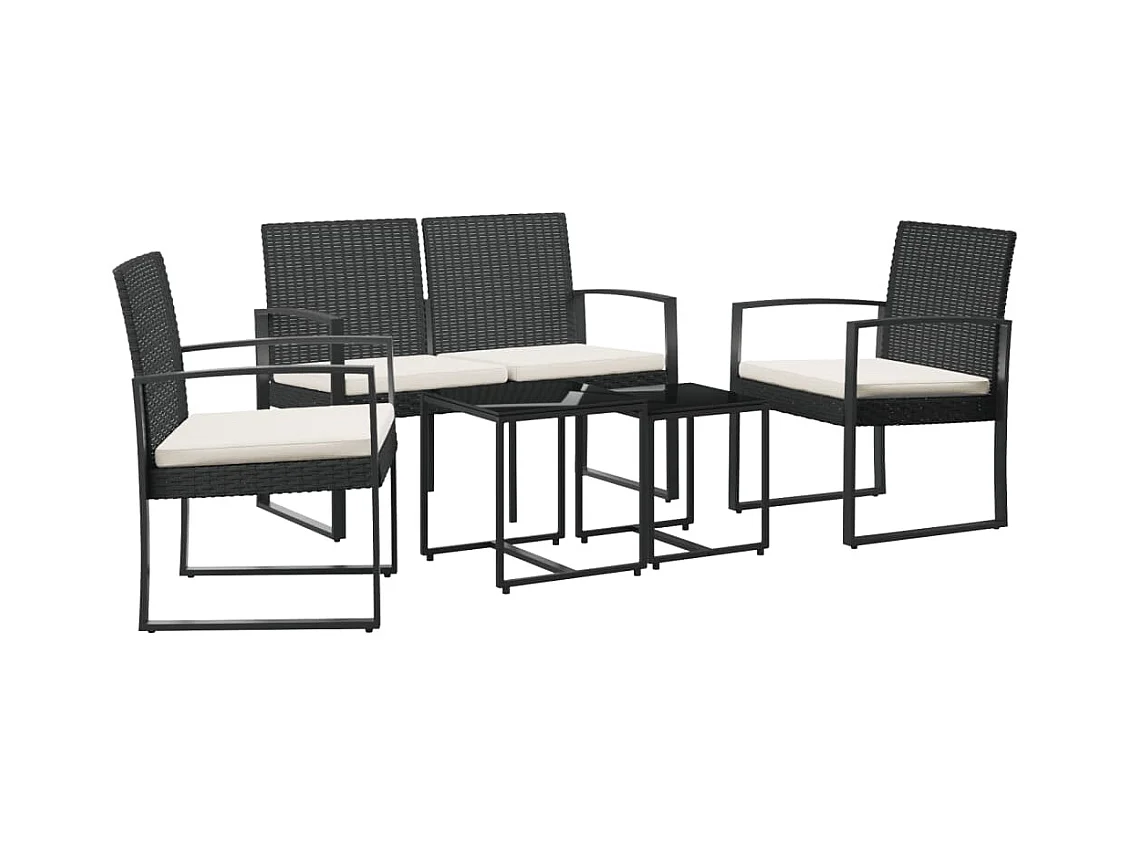 5-tlg. Garten-Essgruppe,Gartensitzgruppe mit Kissen Schwarz PP-Rattan -gkd35802