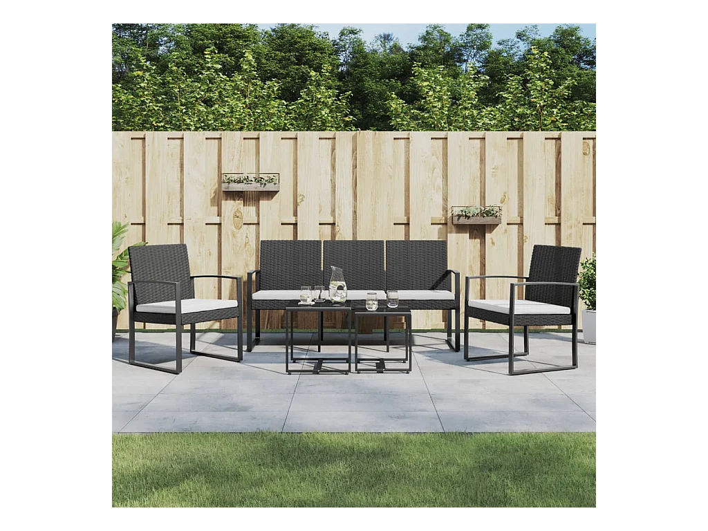 5-tlg. Garten-Essgruppe,Gartensitzgruppe mit Kissen Schwarz PP-Rattan -gkd97867