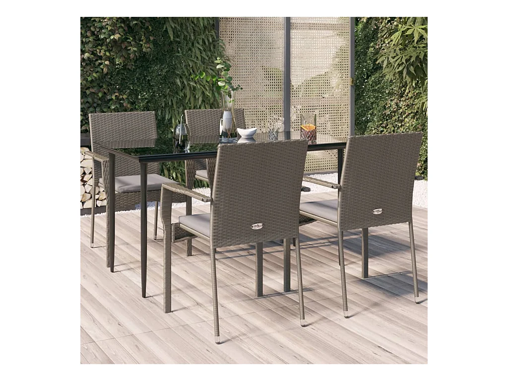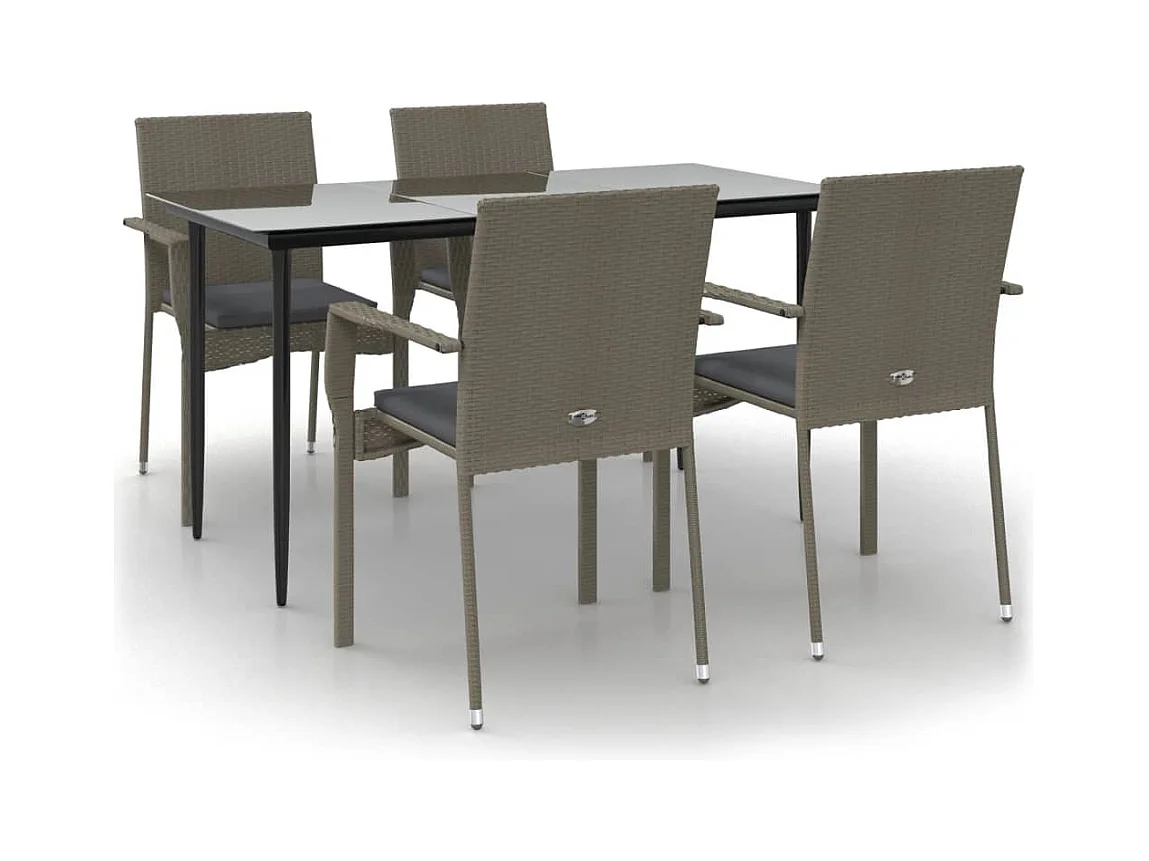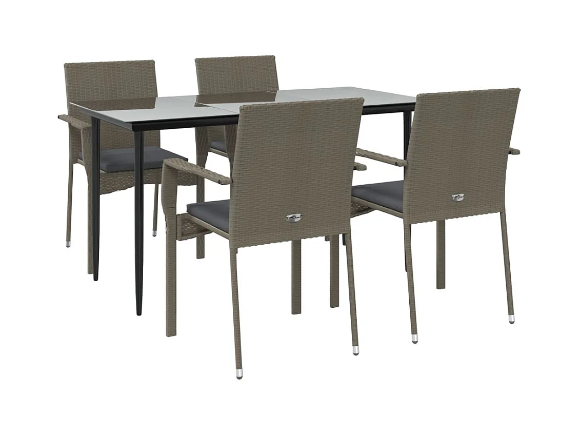 5-tlg. Garten-Essgruppe,Gartensitzgruppe mit Kissen Schwarz und Grau Poly Rattan -gkd65625