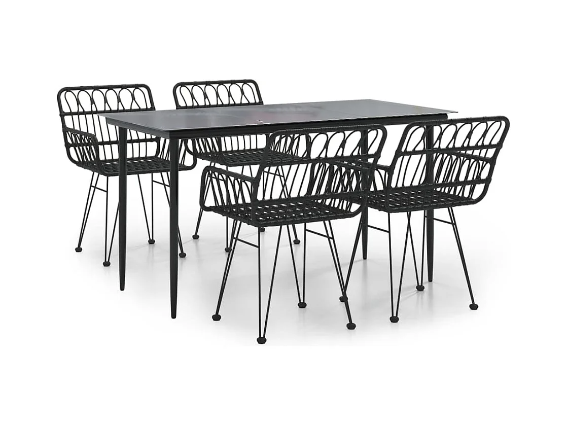 5-tlg. Garten-Essgruppe,Gartensitzgruppe Schwarz Poly Rattan -gkd19411