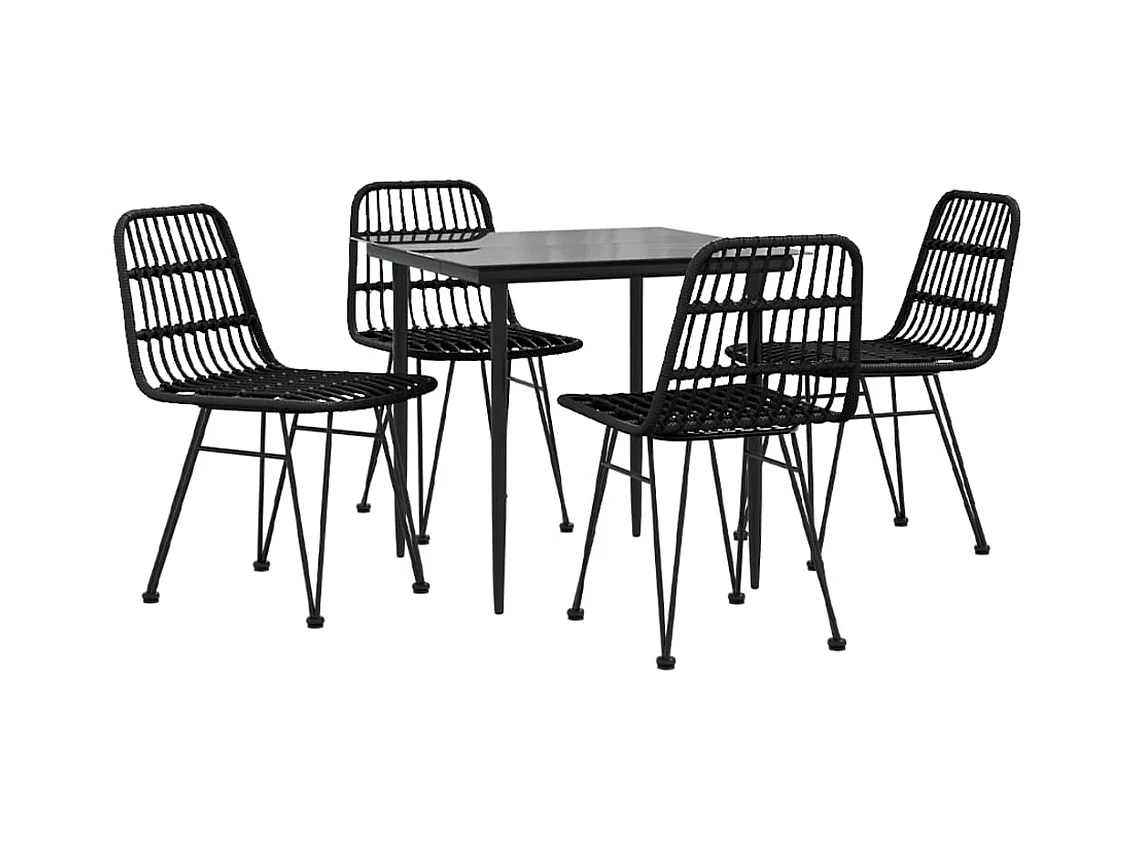 5-tlg. Garten-Essgruppe,Gartensitzgruppe Schwarz Poly Rattan -gkd56004