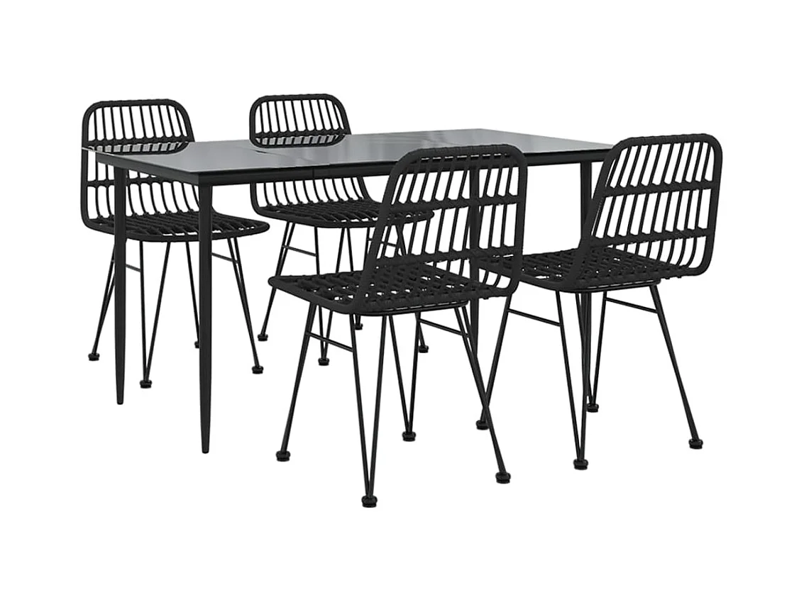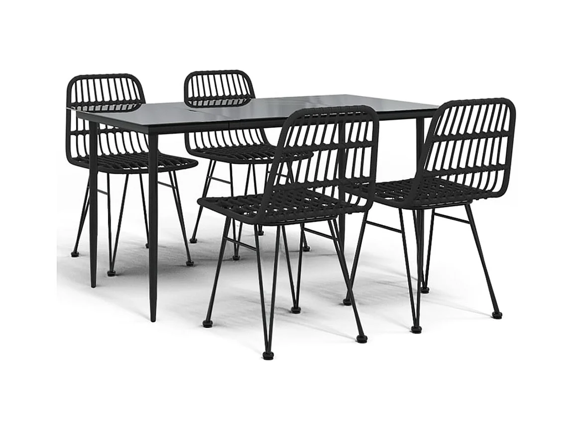 5-tlg. Garten-Essgruppe,Gartensitzgruppe Schwarz Poly Rattan -gkd74576