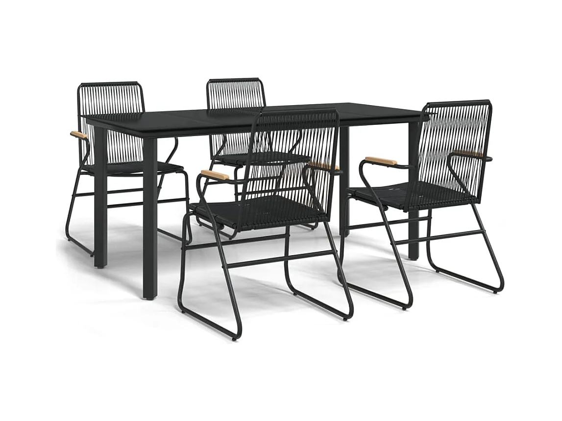5-tlg. Garten-Essgruppe,Gartensitzgruppe Schwarz PVC Rattan -gkd37874