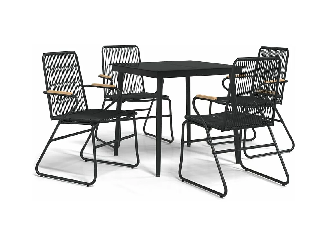 5-tlg. Garten-Essgruppe,Gartensitzgruppe Schwarz PVC Rattan -gkd66943