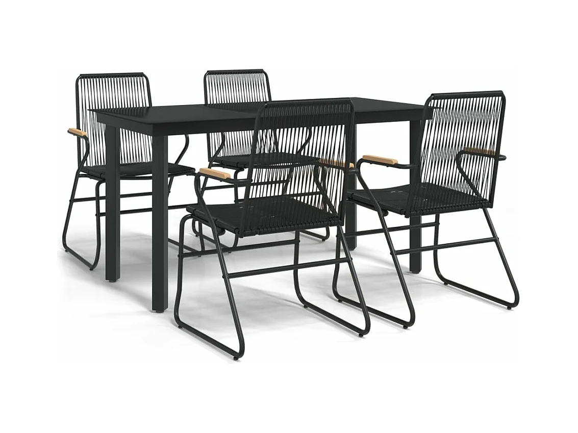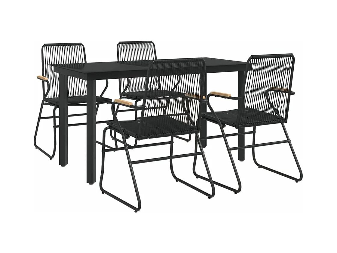 5-tlg. Garten-Essgruppe,Gartensitzgruppe Schwarz PVC Rattan -gkd66960