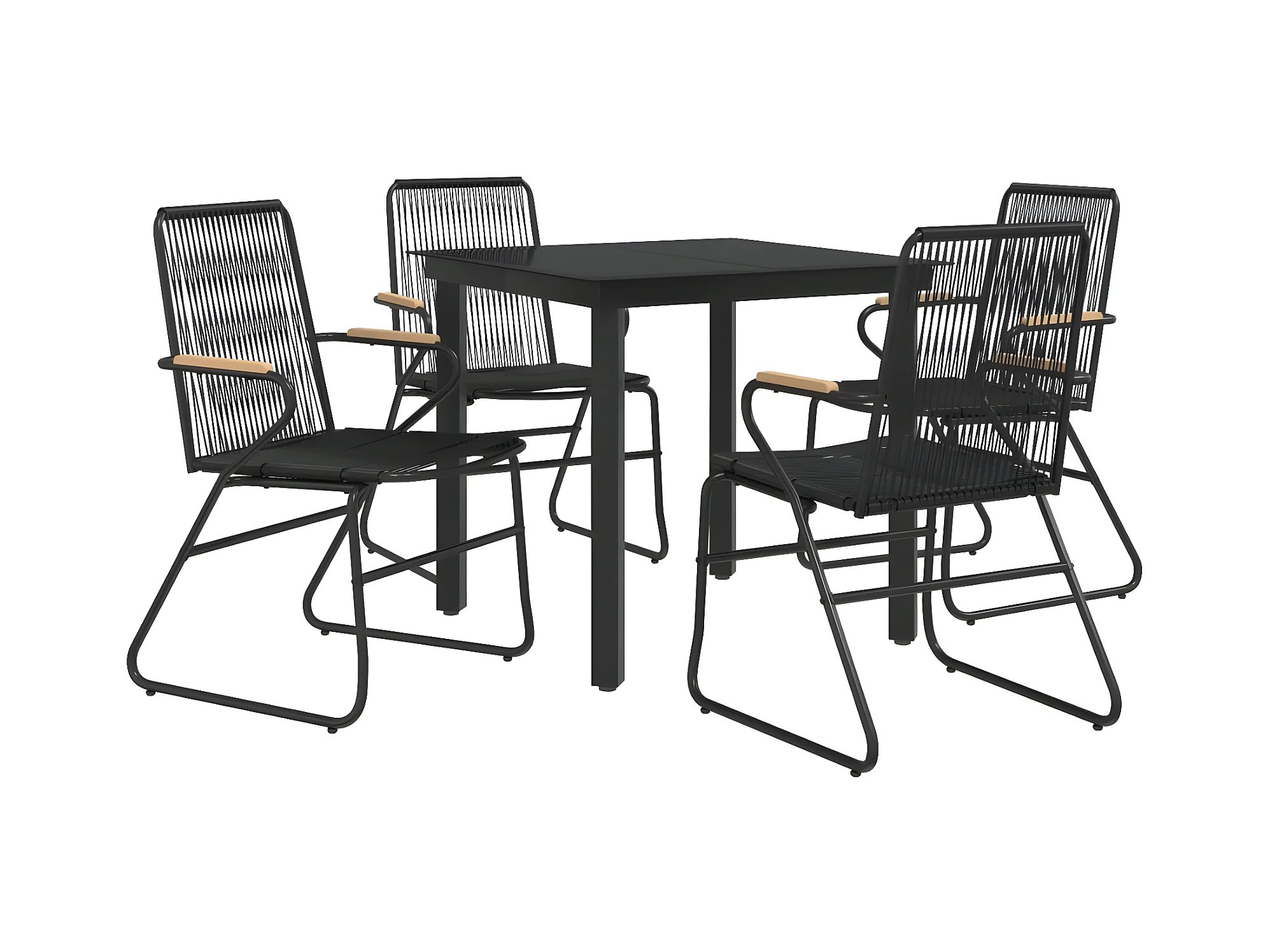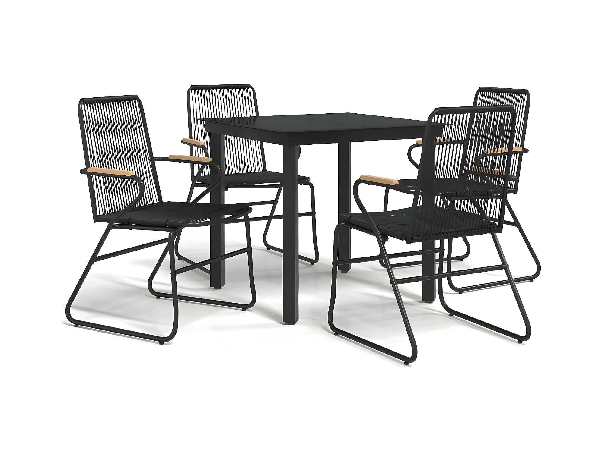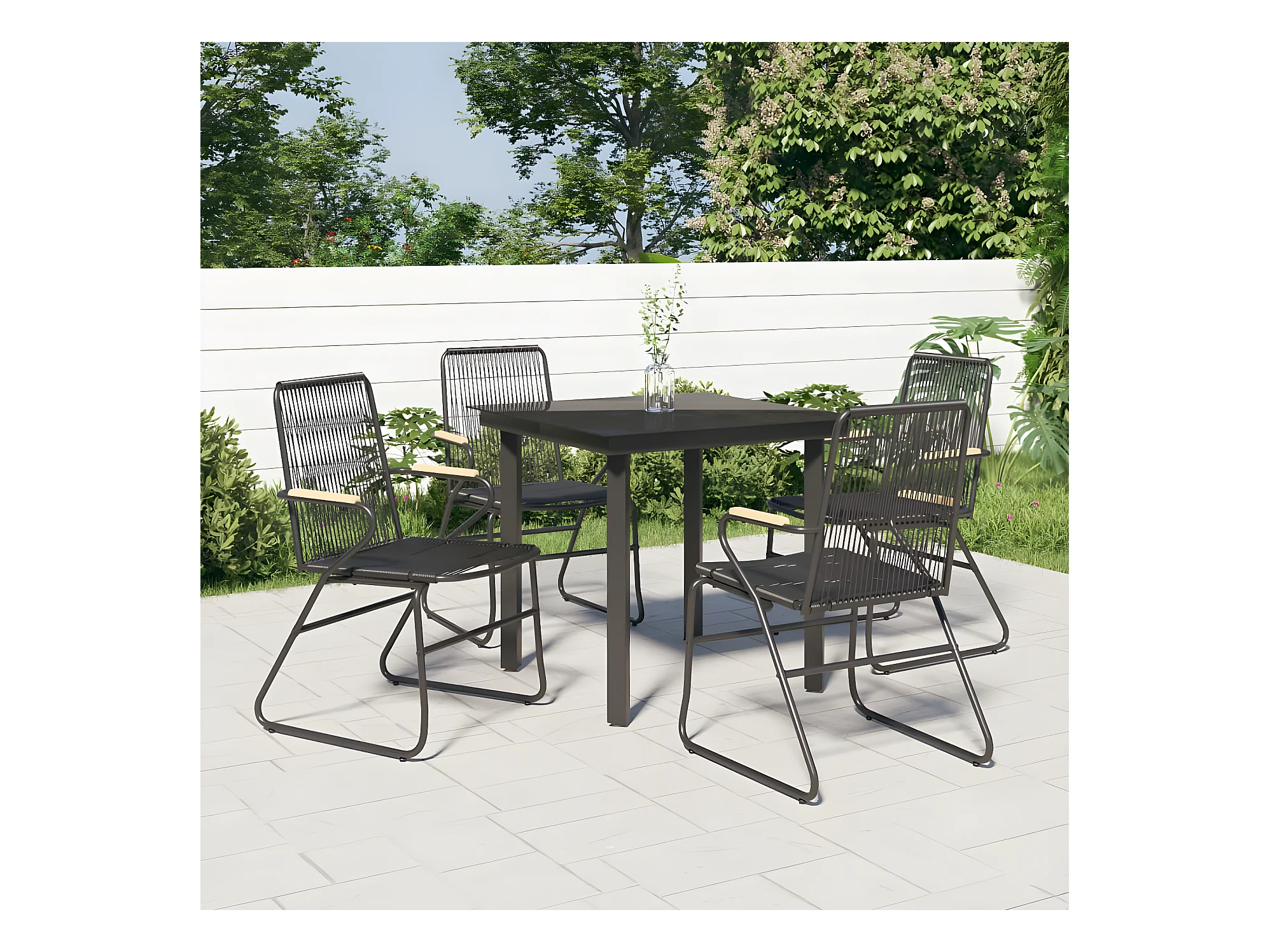 5-tlg. Garten-Essgruppe,Gartensitzgruppe Schwarz PVC Rattan -gkd75811