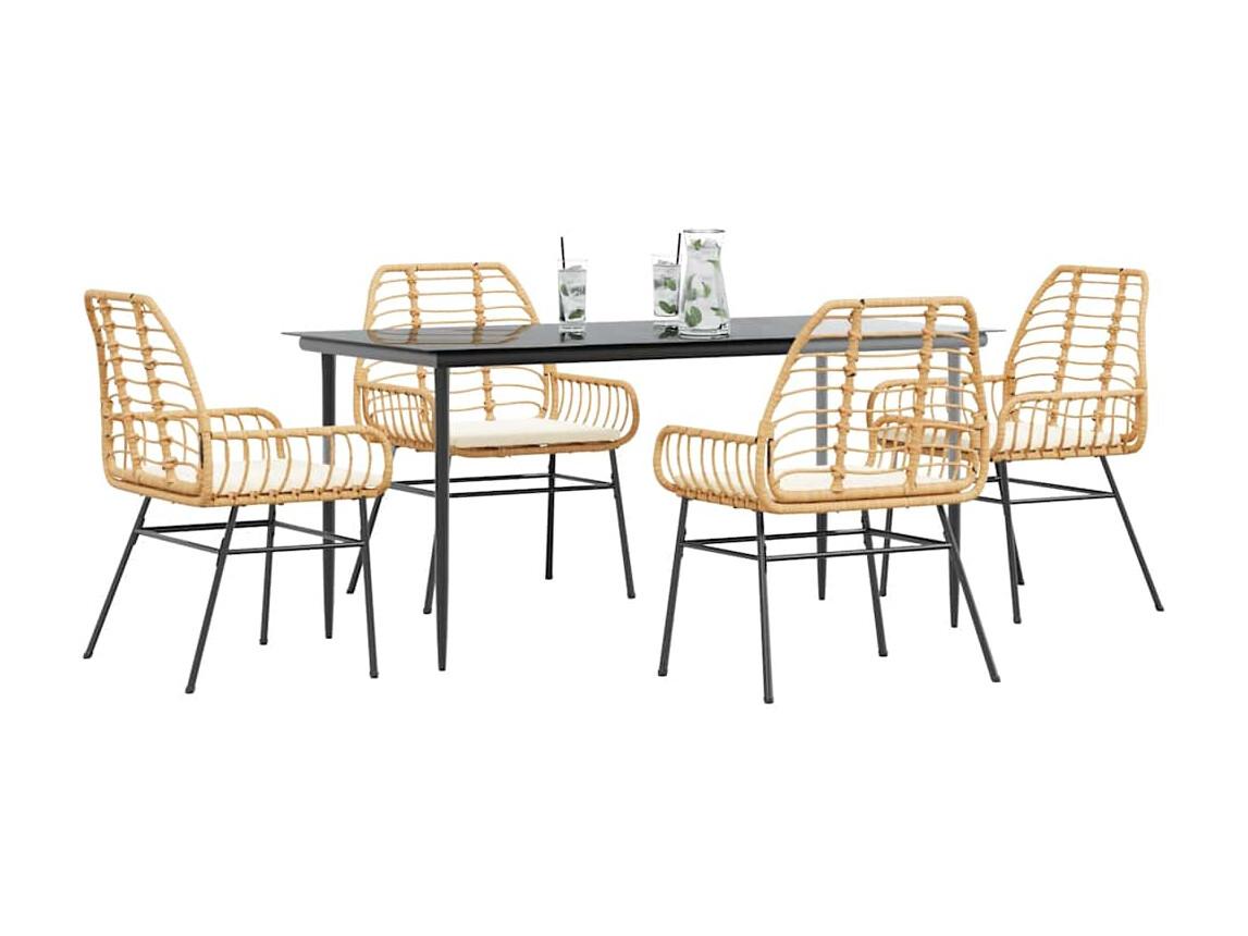 5-tlg. Garten-Essgruppe mit Kissen Braun Poly Rattan Glas