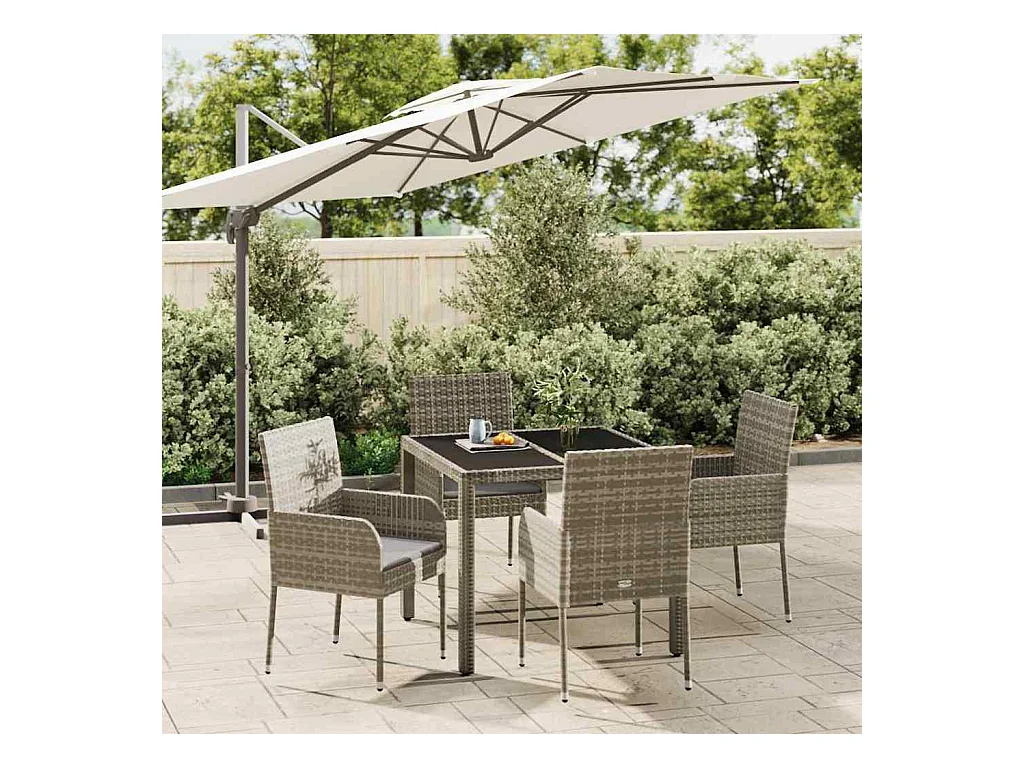 5-tlg. Garten-Essgruppe mit Kissen Grau Poly Rattan