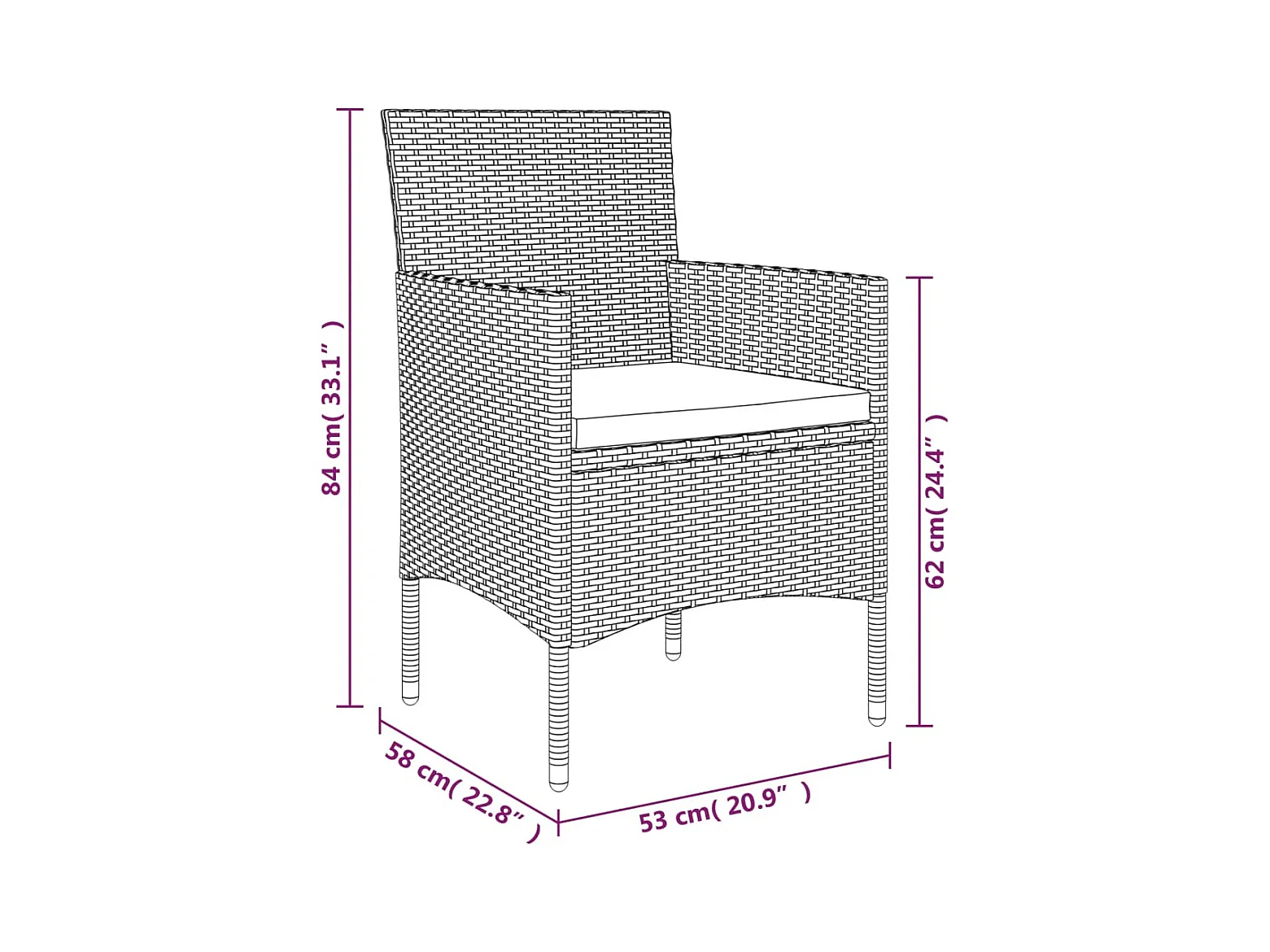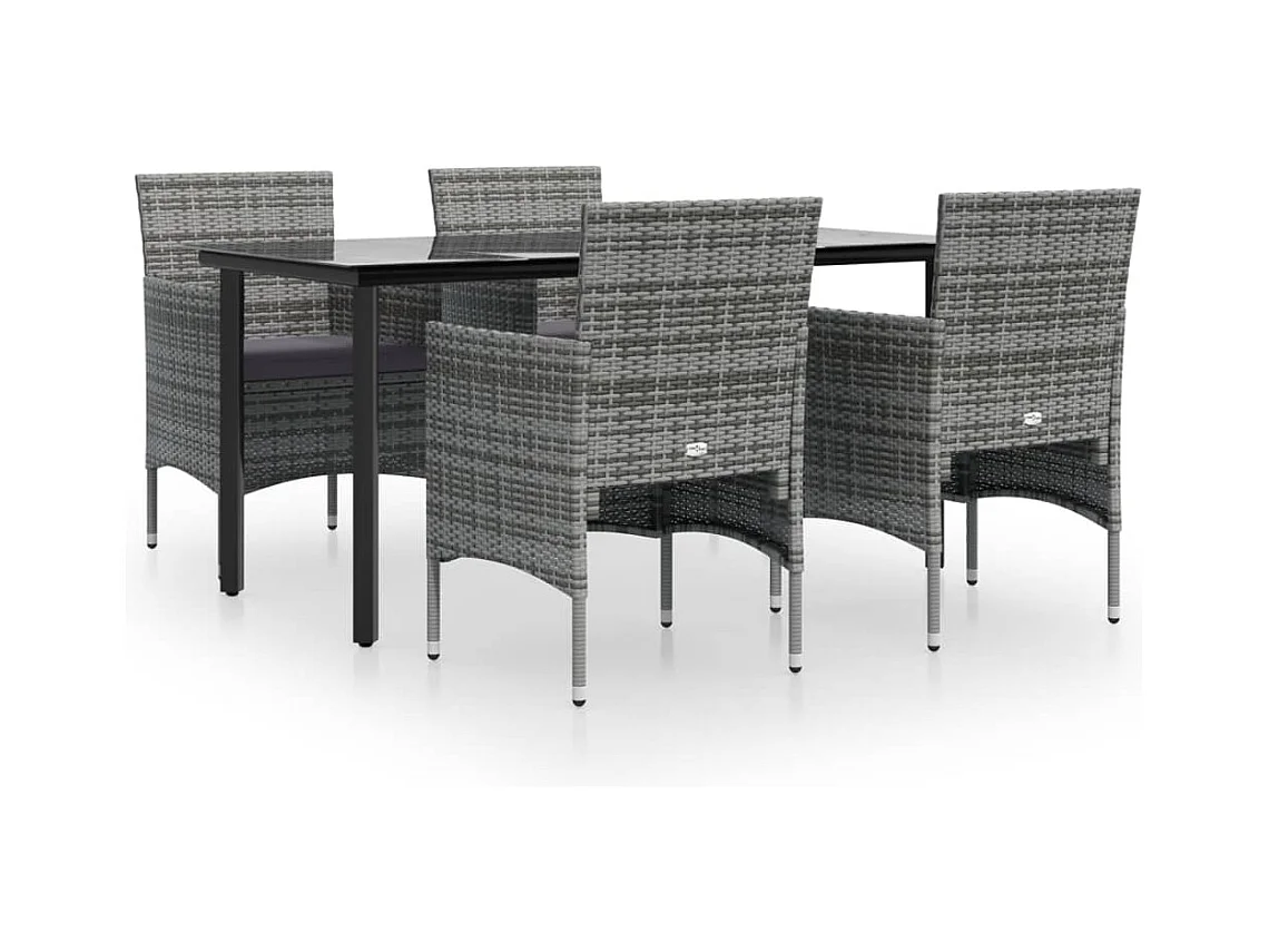 5-tlg. Garten-Essgruppe mit Kissen Grau und Schwarz