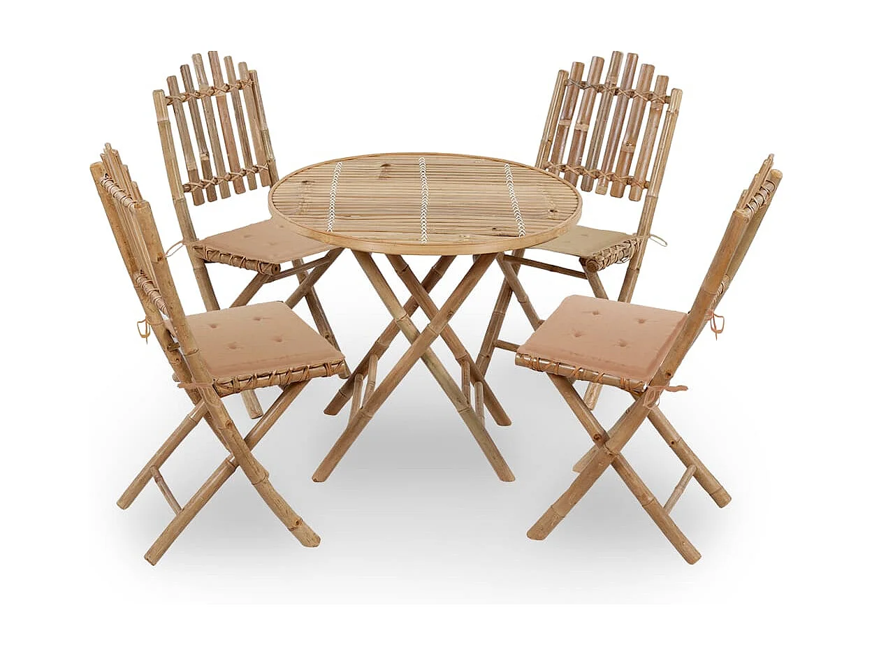 5-tlg. Garten-Essgruppe mit Kissen Klappbar Bambus