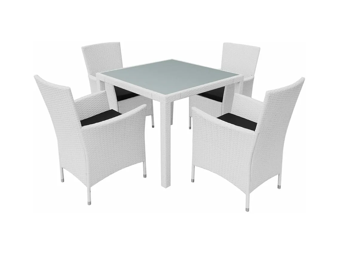 5-tlg. Garten-Essgruppe Poly Rattan Cremeweiß