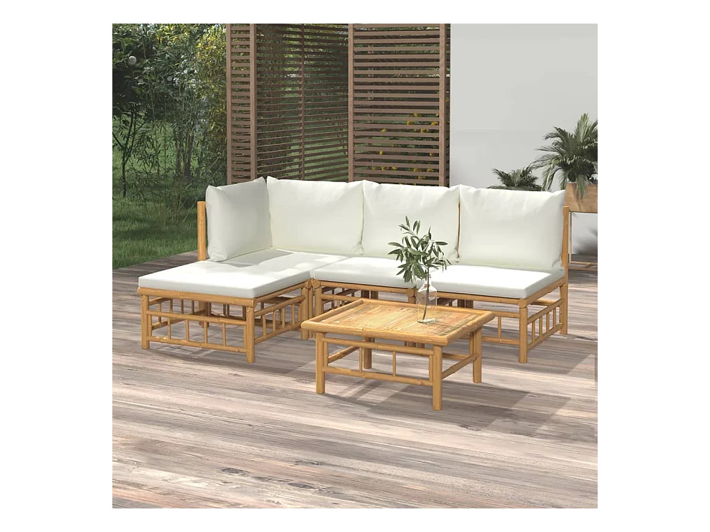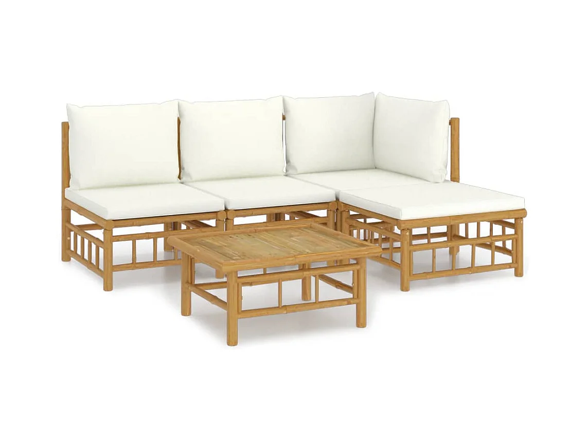 5-tlg. Garten-Lounge-Set mit Cremeweißen Kissen Bambus