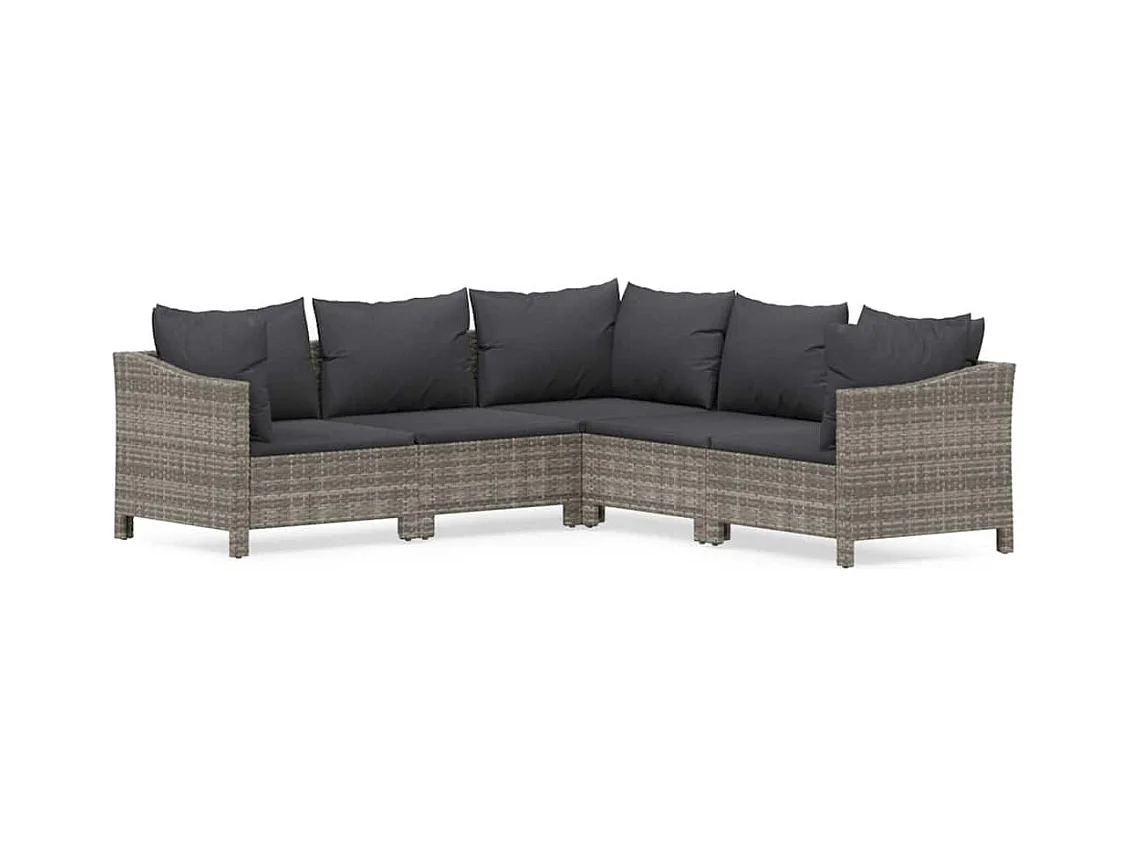 5-tlg. Garten-Lounge-Set mit Kissen Grau Poly Rattan