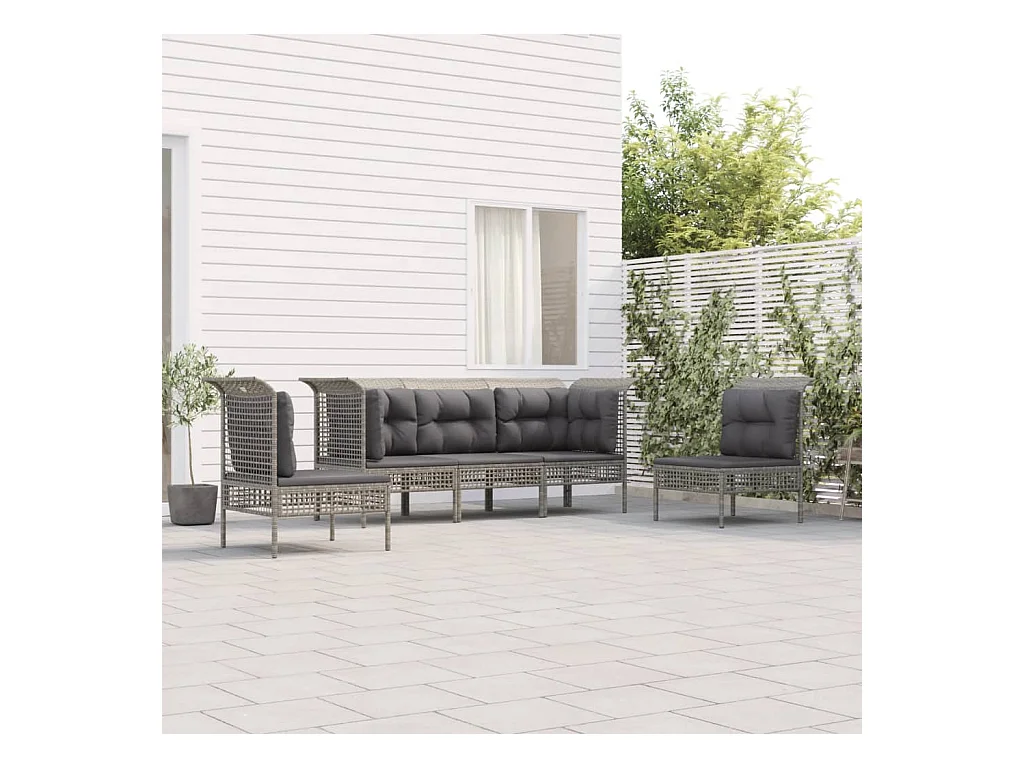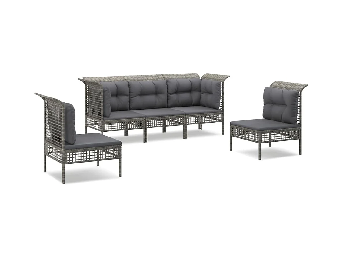 5-tlg. Garten-Lounge-Set mit Kissen Grau Poly Rattan