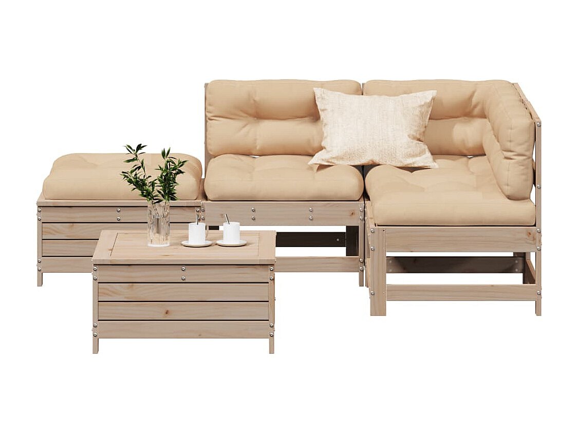 5-tlg. Garten-Lounge-Set mit Kissen Massivholz Kiefer