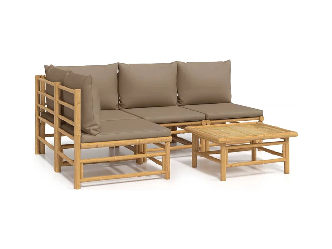 5-tlg. Garten-Lounge-Set mit Kissen Taupe Bambus