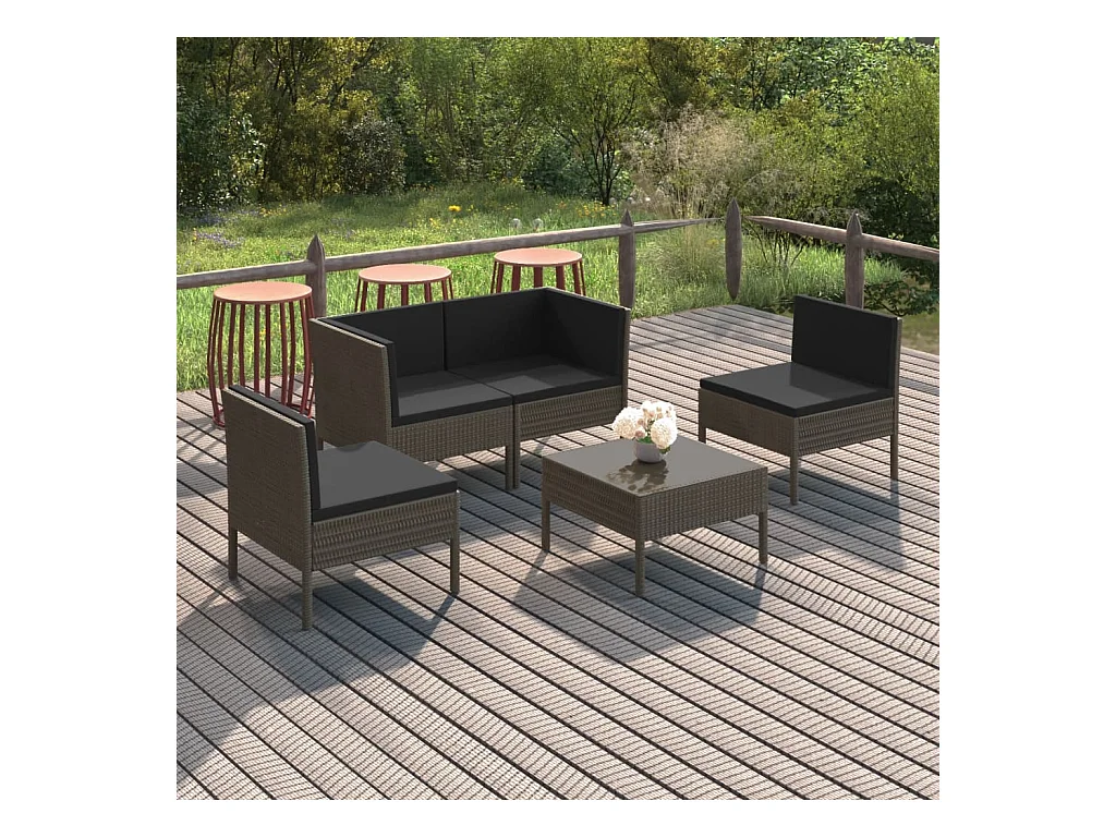 5-tlg. Garten-Sitzgruppe: Sofa + Tisch | Garten-Lounge-Set mit Auflagen Poly Rattan Grau -GKD990666