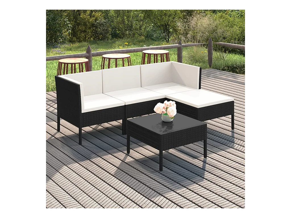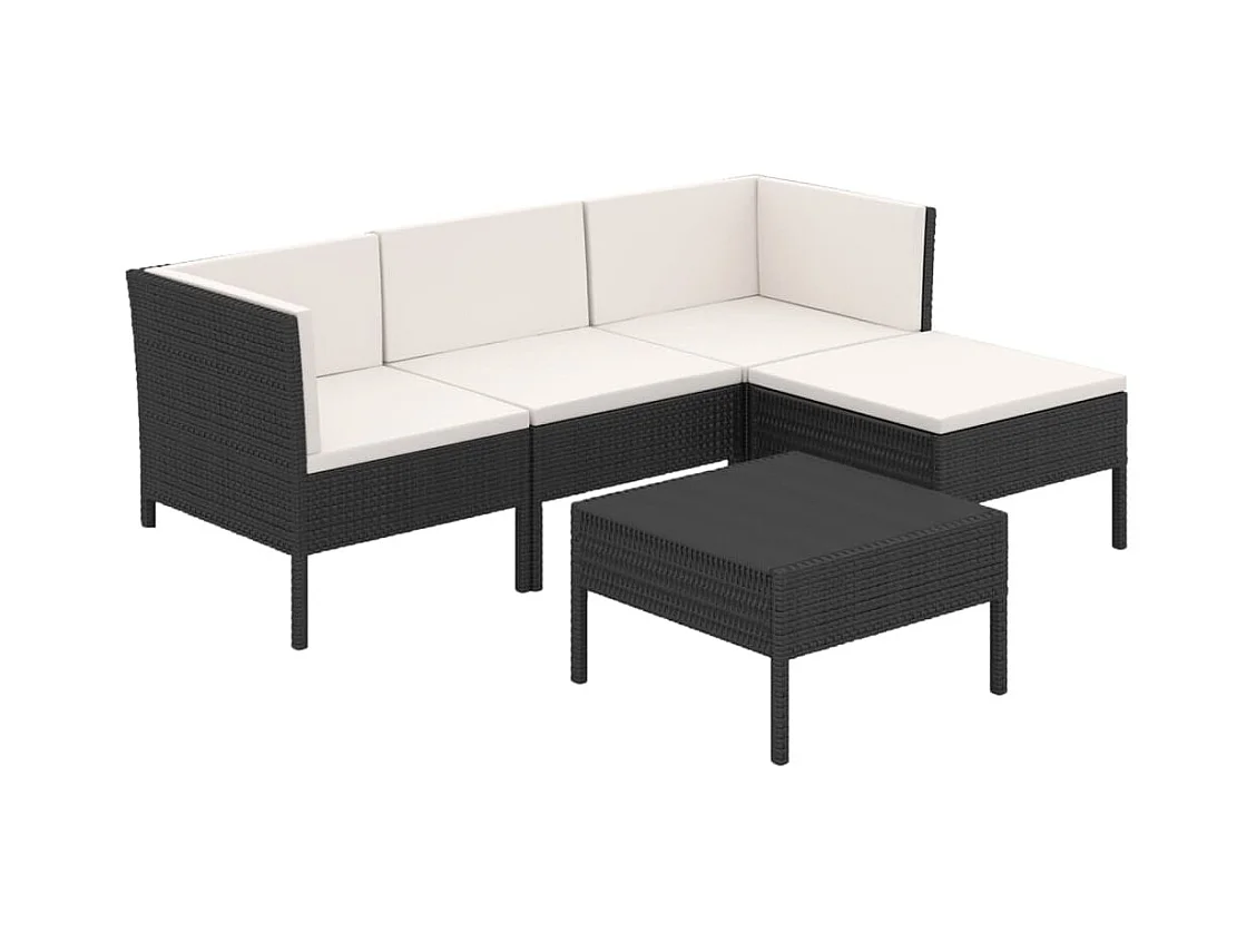 5-tlg. Garten-Sitzgruppe: Sofa + Tisch | Garten-Lounge-Set mit Auflagen Poly Rattan Schwarz -GKD857153